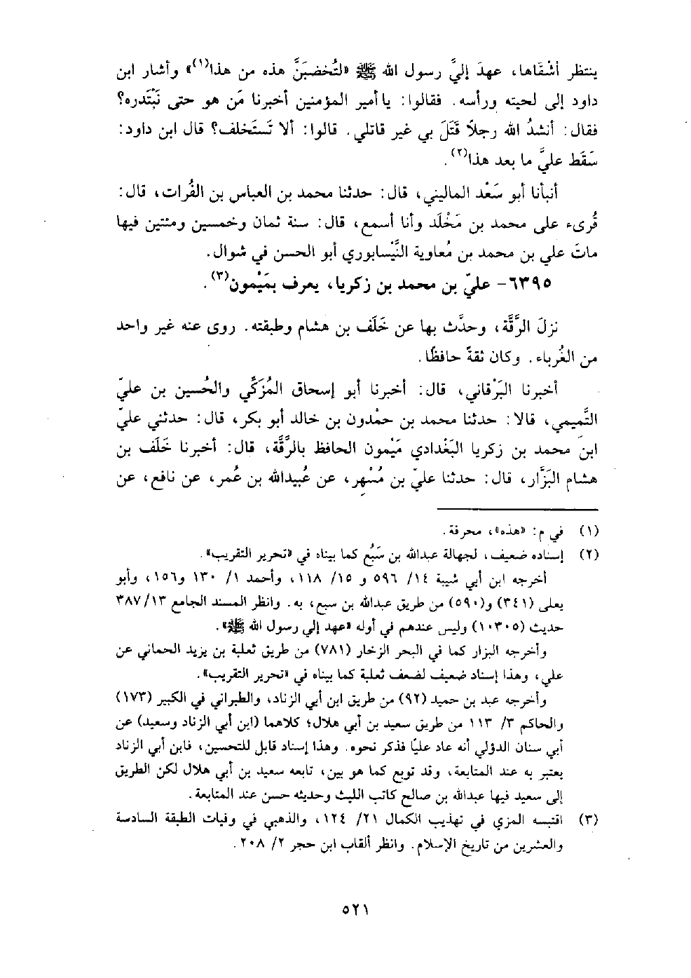 6395 - علي بْن مُحَمَّد بْن زكريا يعرف بميمون نزل الرقة، وحدث بها عَن خلف بْن هشام، وطبقته.