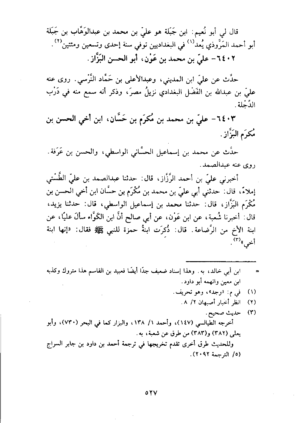 6402 - علي بْن مُحَمَّد بْن عون أَبُو الحسن البزاز