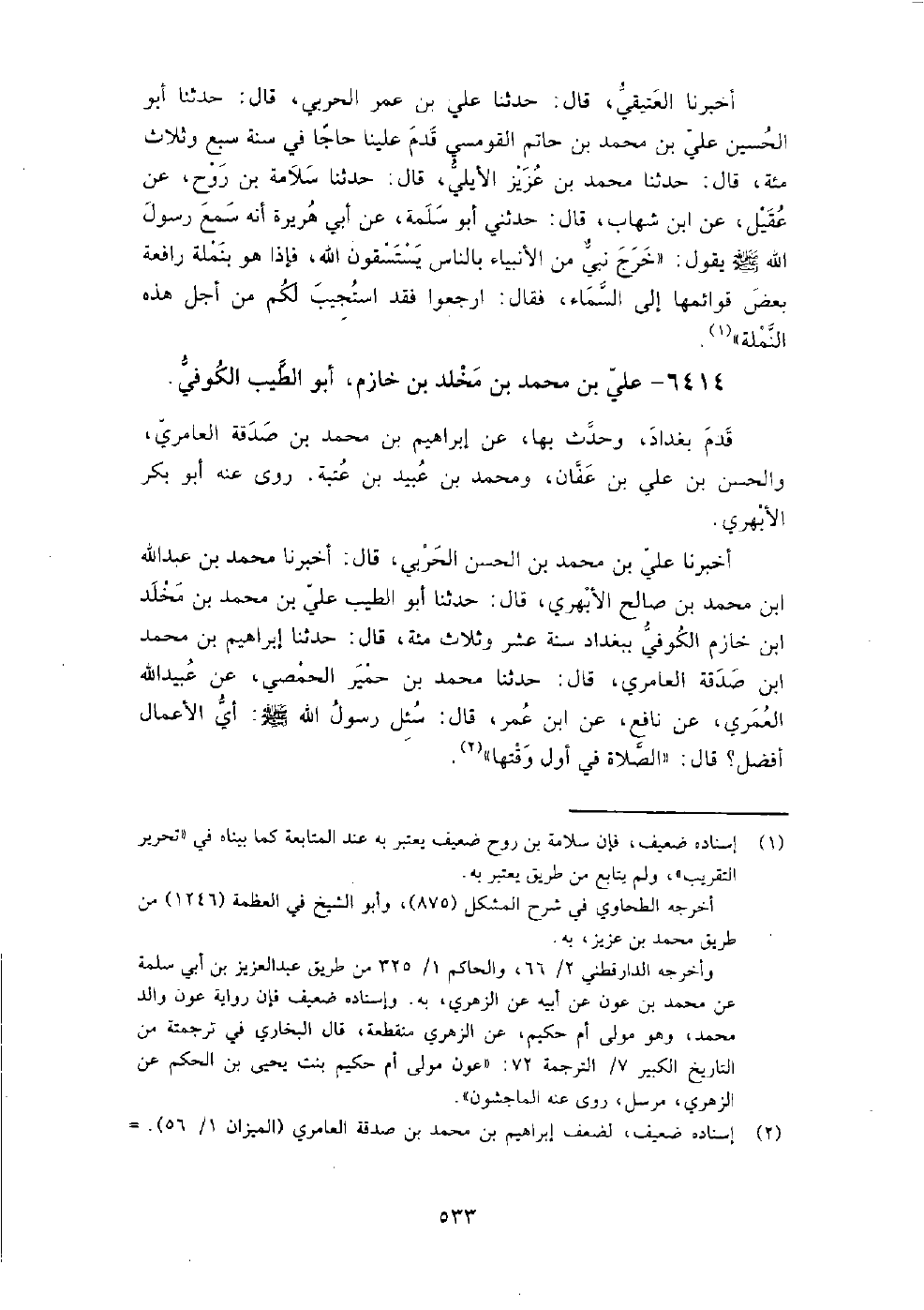 6414 - علي بْن مُحَمَّد بن مخلد بْن خازم أَبُو الطيب الكوفي