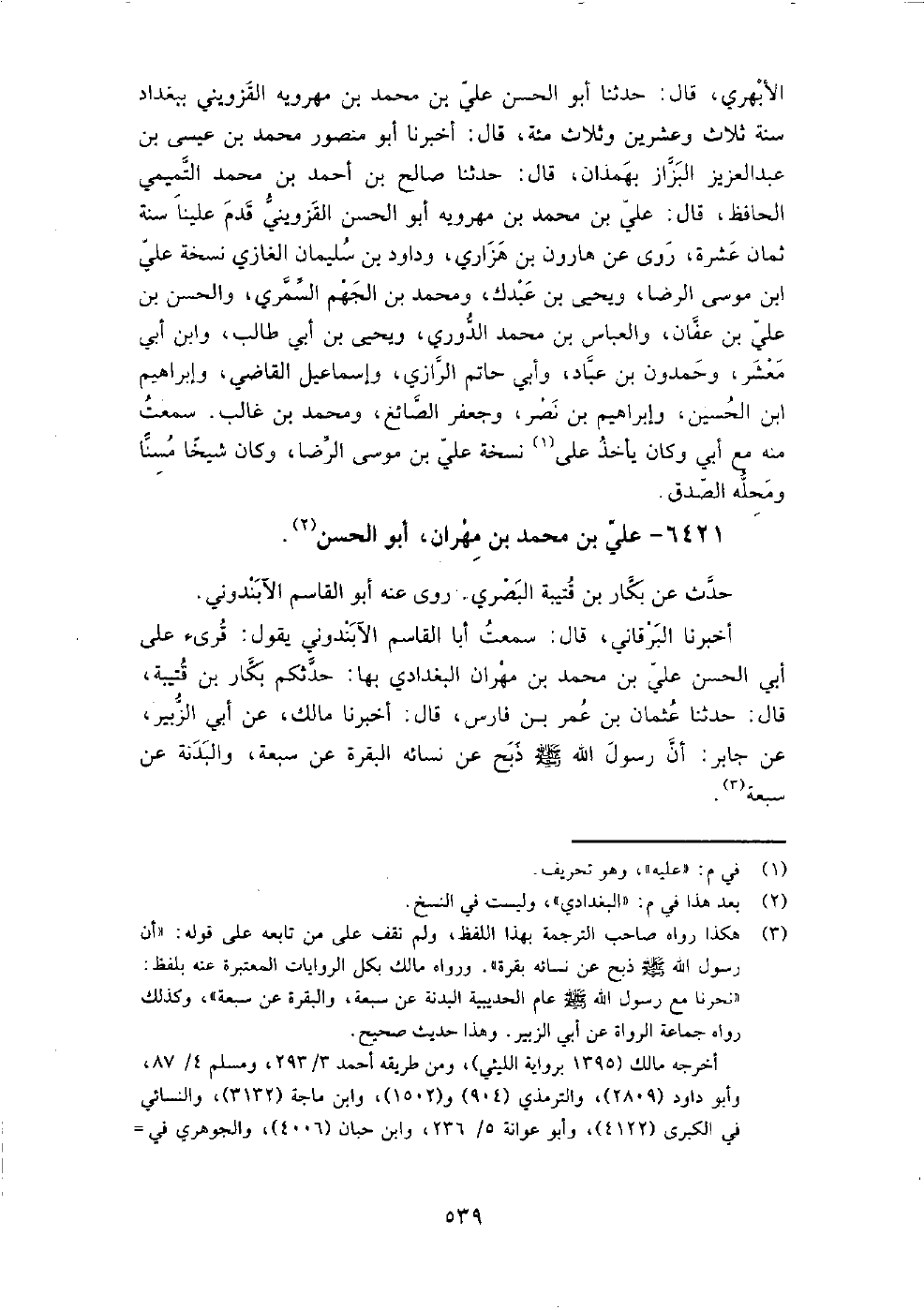 6421 - علي بْن مُحَمَّد بْن مهران أَبُو الحسن