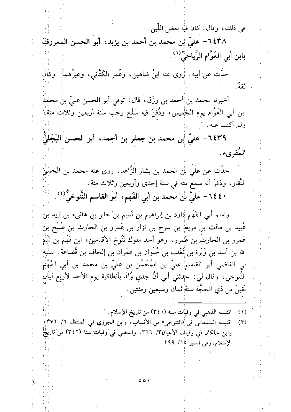 6440 - علي بْن مُحَمَّد بْن أَبِي الفهم أَبُو القاسم التنوخي