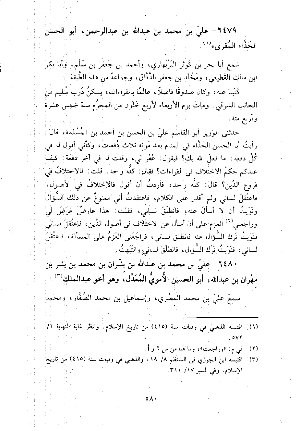 6479 - علي بْن مُحَمَّد بْن عَبْد اللَّه بْن عَبْد الرَّحْمَن أَبُو الحسن الحذاء المقرئ