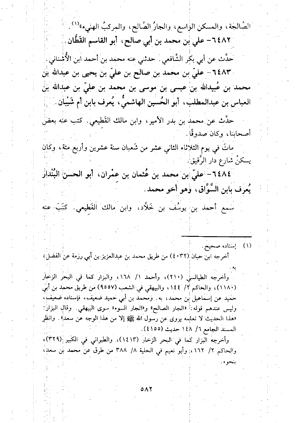 6482 - علي بْن مُحَمَّد بْن أَبِي صالح أَبُو القاسم القطان حدث عَن أَبِي بكر الشافعي.
