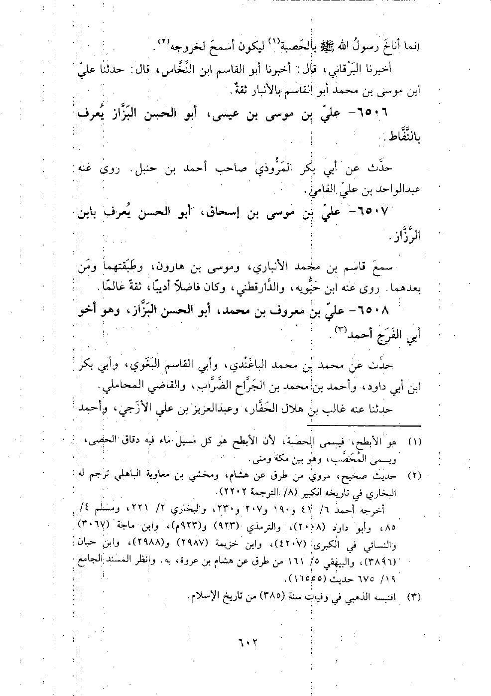 6507 - علي بْن مُوسَى بْن إِسْحَاق أَبُو الحسن يعرف بابن الرزاز سمع قاسم بْن مُحَمَّد الأنباري، وموسى بْن هارون، وطبقتهما، ومن بعدهما.
