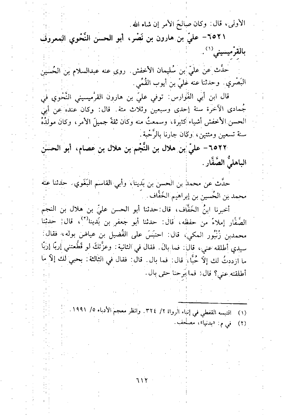 6521 - علي بْن هارون بْن نصر أَبُو الحسن النحوي المعروف بالقرميسيني حدث عَن علي بْن سُلَيْمَان الأخفش.