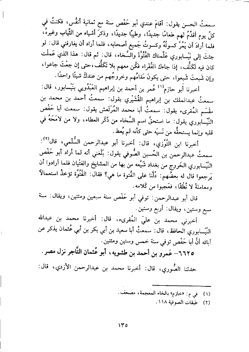 حَدَّثَنَا الصوري، قَالَ: أَخْبَرَنَا مُحَمَّد بْن عبد الرحمن الأزدي، قَالَ: حَدَّثَنَا عبد الواحد بْن مُحَمَّد بْن مسرور، قَالَ: حَدَّثَنَا أَبُو سعيد بْن يونس، قَالَ: عمرو بْن أَحْمَد بْن طشويه، يكنى أبا عثمان بغدادي قدم مصر، وكتب عنه، وكان له بمصر مكان عند الناس، وكان تاجرا.