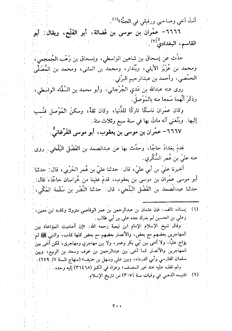 6667 - عمران بْن موسى بْن يعقوب، أَبُو موسى الفرغاني قدم بغداد حاجا، وحدث بها عَنْ عبد الصمد بْن الفضل البلخي.