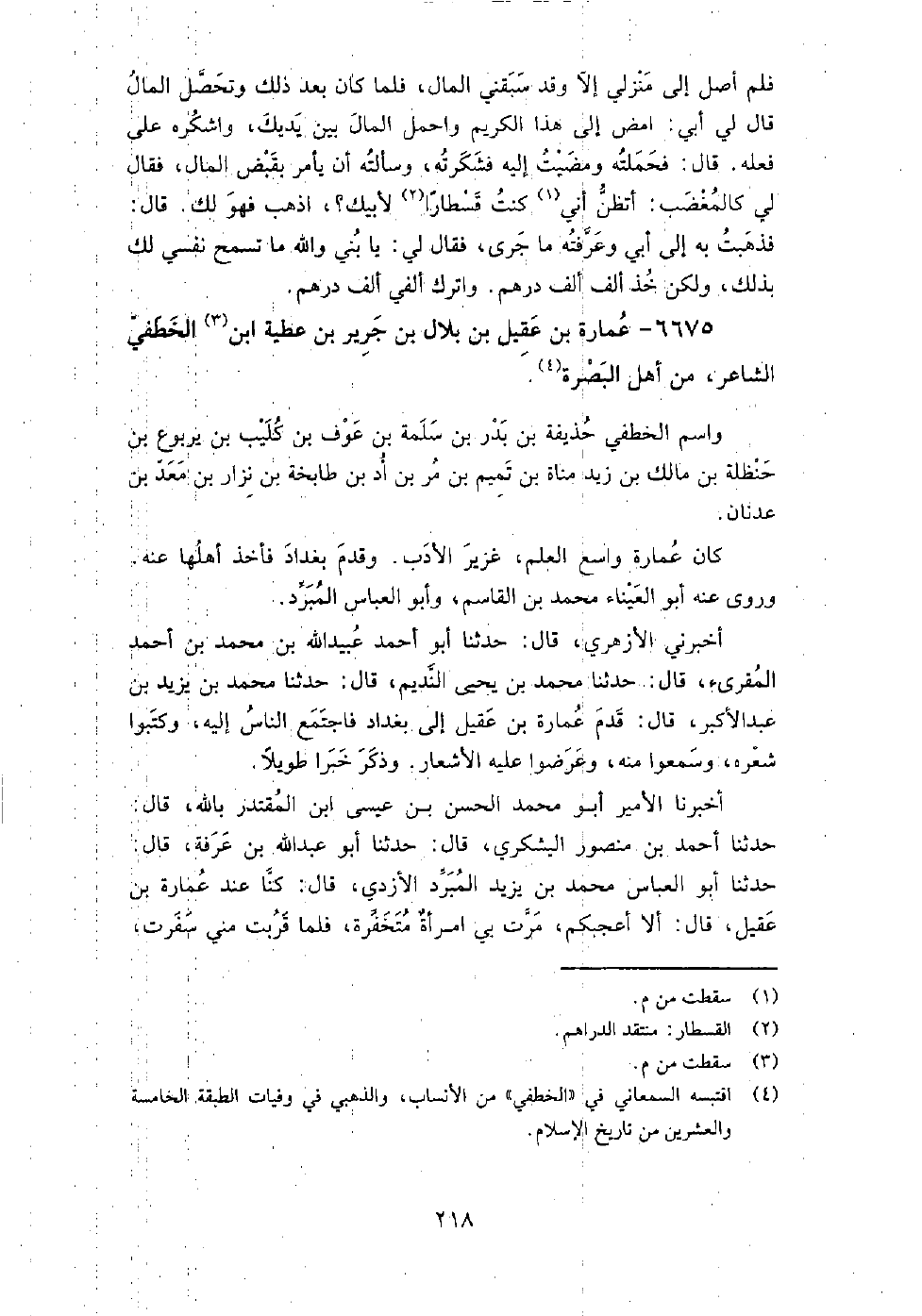 6675 - عمارة بْن عقيل بْن بلال بْن جرير بْن عطية ابن الخطفي الشاعر من أهل البصرة.