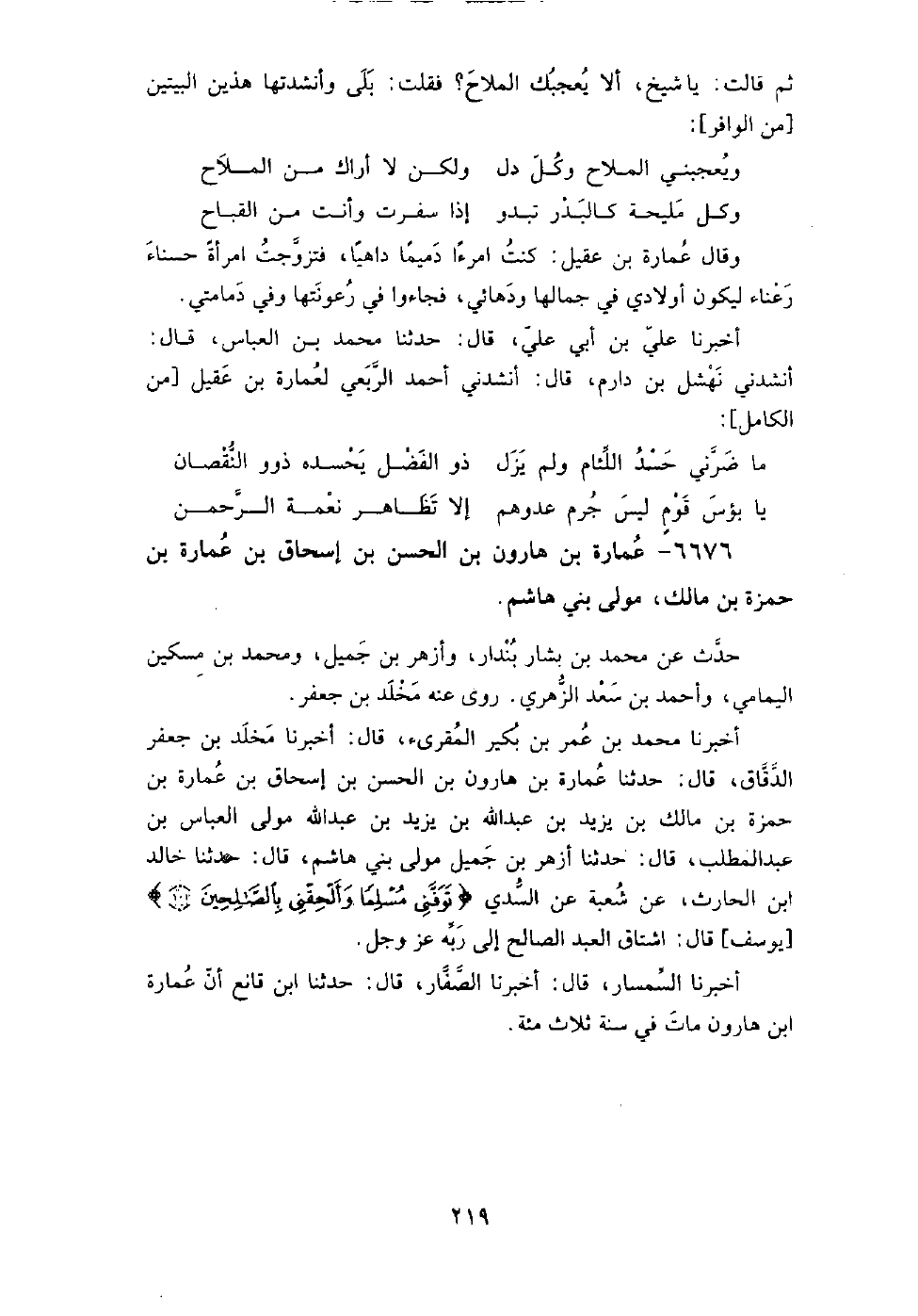 6676 - عمارة بْن هارون بْن الحسن بْن إسحاق بْن عمارة بْن حمزة بْن مالك، مولى بني هاشم