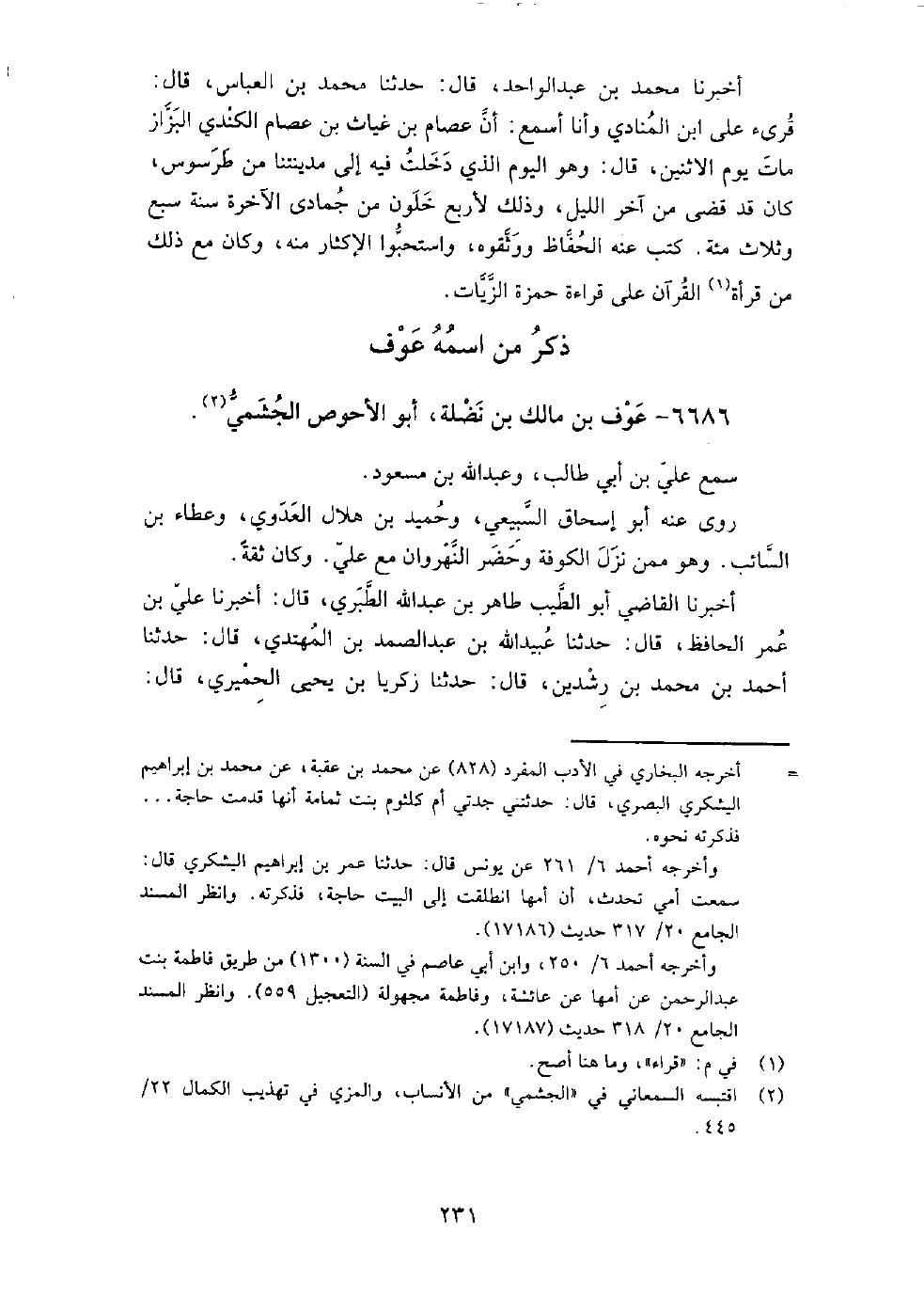6686 - عوف بْن مالك بْن نضلة، أَبُو الأحوص الجشمي سمع علي بْن أبي طالب، وعبد اللَّه بْن مسعود.