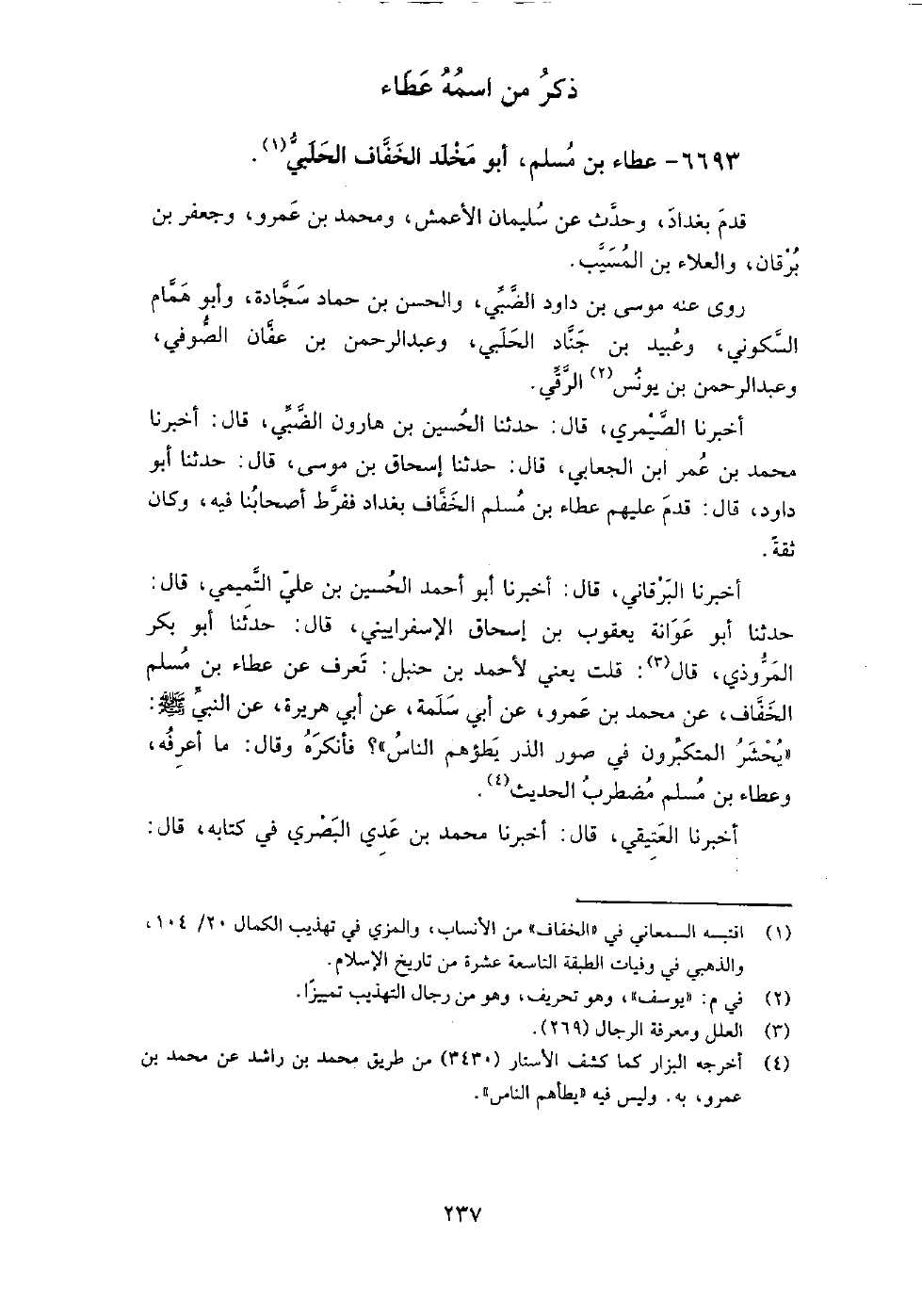 6693 - عطاء بْن مسلم، أَبُو مخلد الخفاف الحلبي قدم بغداد.