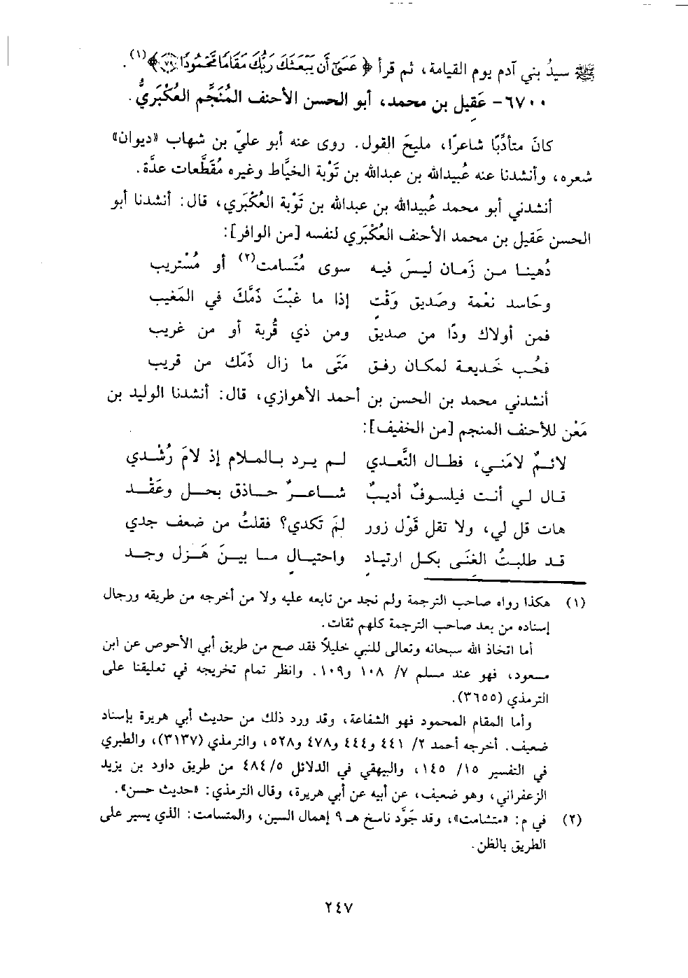 6700 - عقيل بْن مُحَمَّد، أَبُو الحسن الأحنف المنجم العكبري كان متأدبا شاعرا، مليح القول.