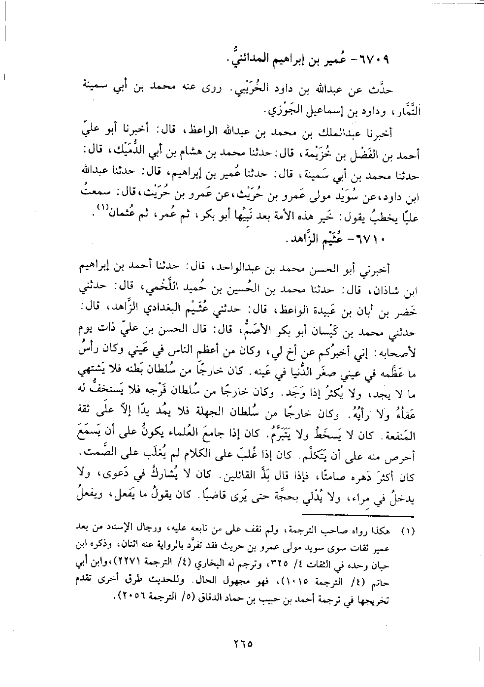 6709 - عمير بْن إبراهيم المدائني حدث عَنْ عبد اللَّه بْن داود الخريبي.