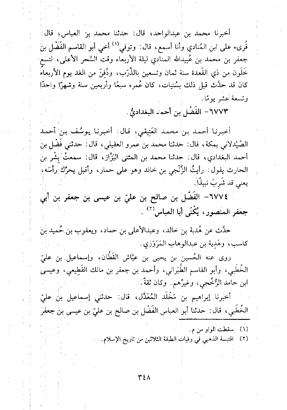6774 - الفضل بْن صالح بْن علي بْن عيسى بْن جعفر بْن أبي جعفر المنصور، يكنى أبا العباس