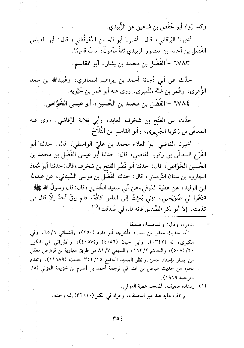 6784 - الفضل بْن مُحَمَّد بْن الحسين، أَبُو عيسى الخواص حدث عَنِ الفتح بْن شخرف العابد، وأبي قلابة الرقاشي.