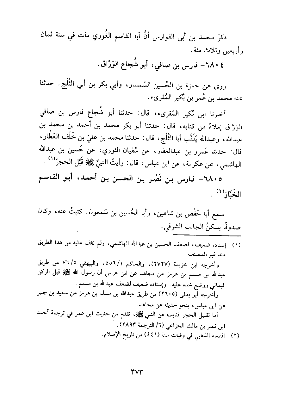 6804 - فارس بْن صافي، أَبُو شجاع الوراق روى عَنْ حمزة بْن الحسين السمسار، وأبي بكر بْن أبي الثلج، حَدَّثَنَا عنه مُحَمَّد بْن عمر بْن بكير المقرئ.