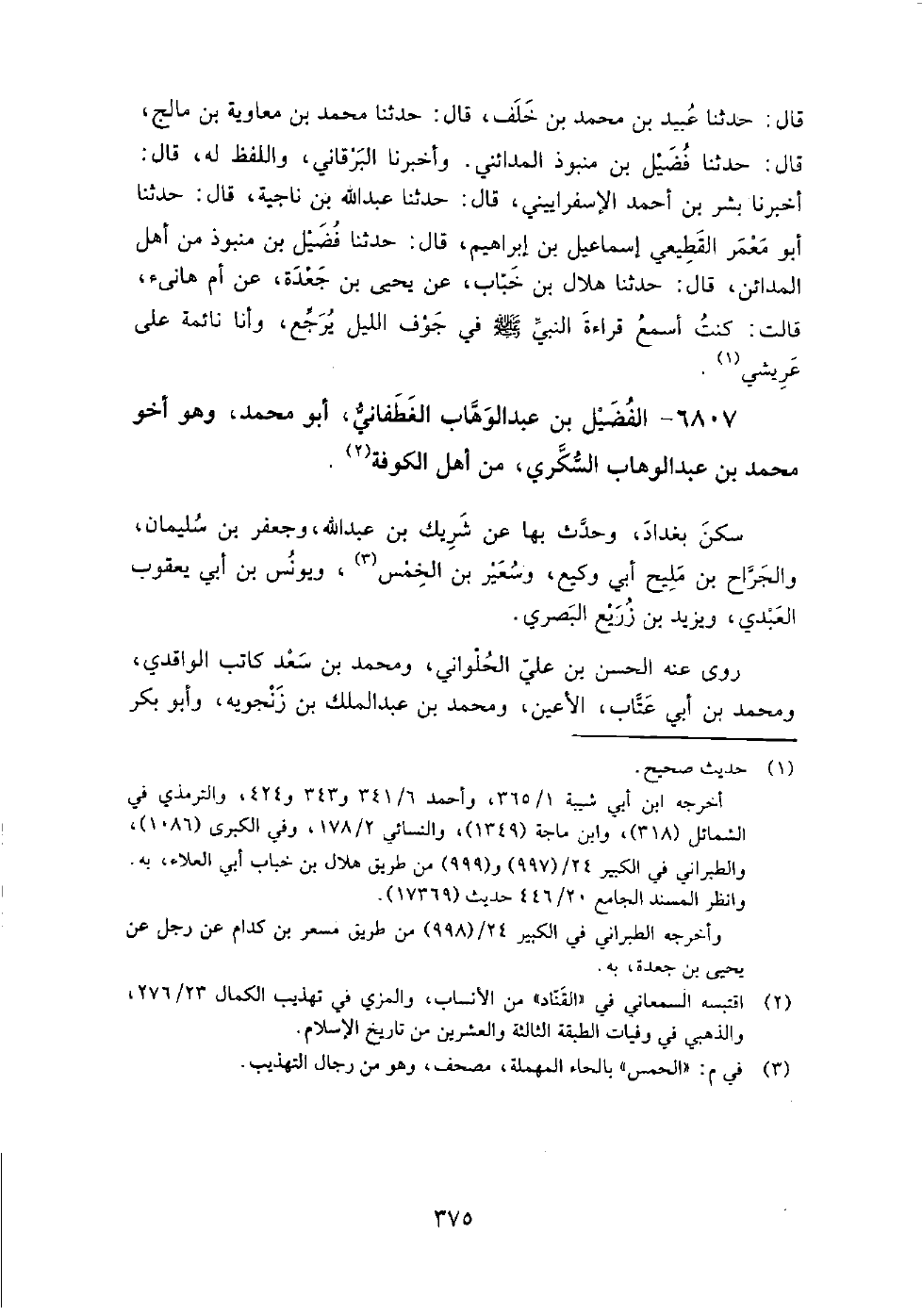 6807 - الفضيل بْن عبد الوهاب الغطفاني، أَبُو مُحَمَّد، وهو أخو مُحَمَّد بْن عبد الوهاب السكري من أهل الكوفة.