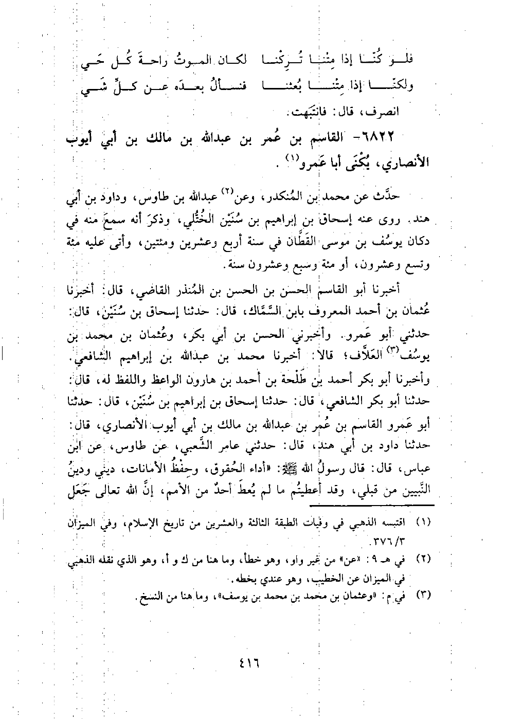 6822 - القاسم بْن عمر بْن عبد اللَّه بْن مالك بْن أبي أيوب الأنصاري يكنى أبا عمرو