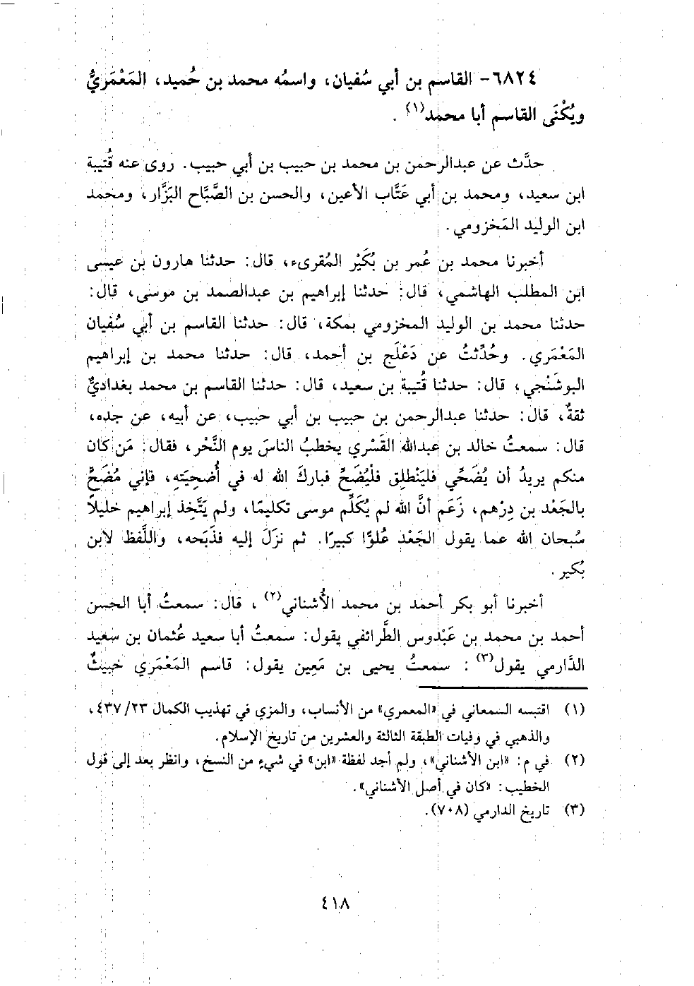 6824 - القاسم بْن أبي سفيان، واسمه مُحَمَّد بْن حميد المعمري، ويكنى القاسم أبا مُحَمَّد