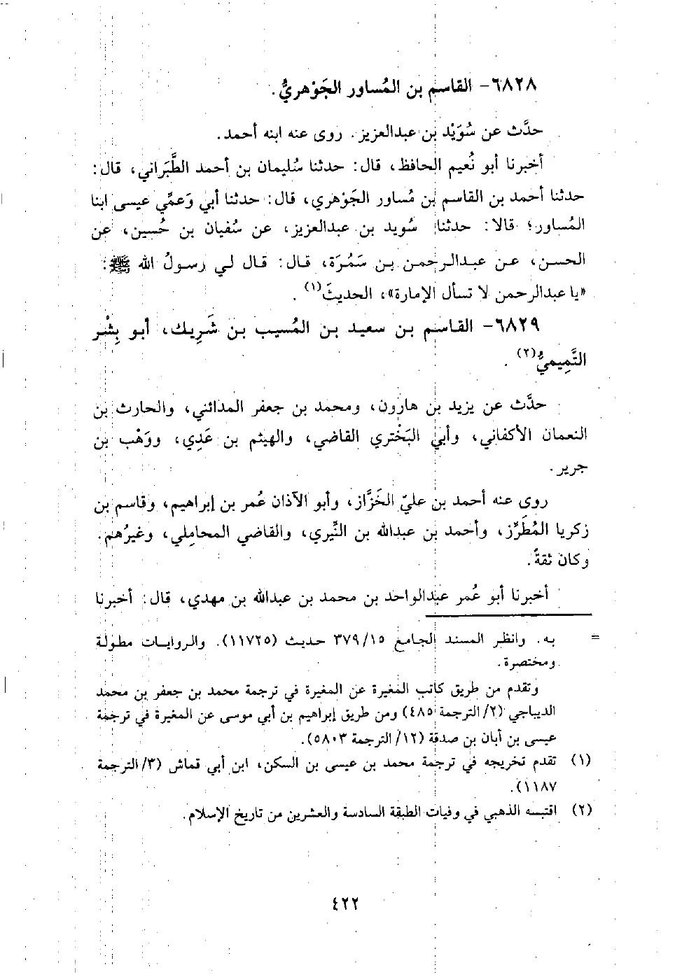 6828 - القاسم بْن المساور الجوهري حَدَّثَ عَنْ سويد بْن عبد العزيز.