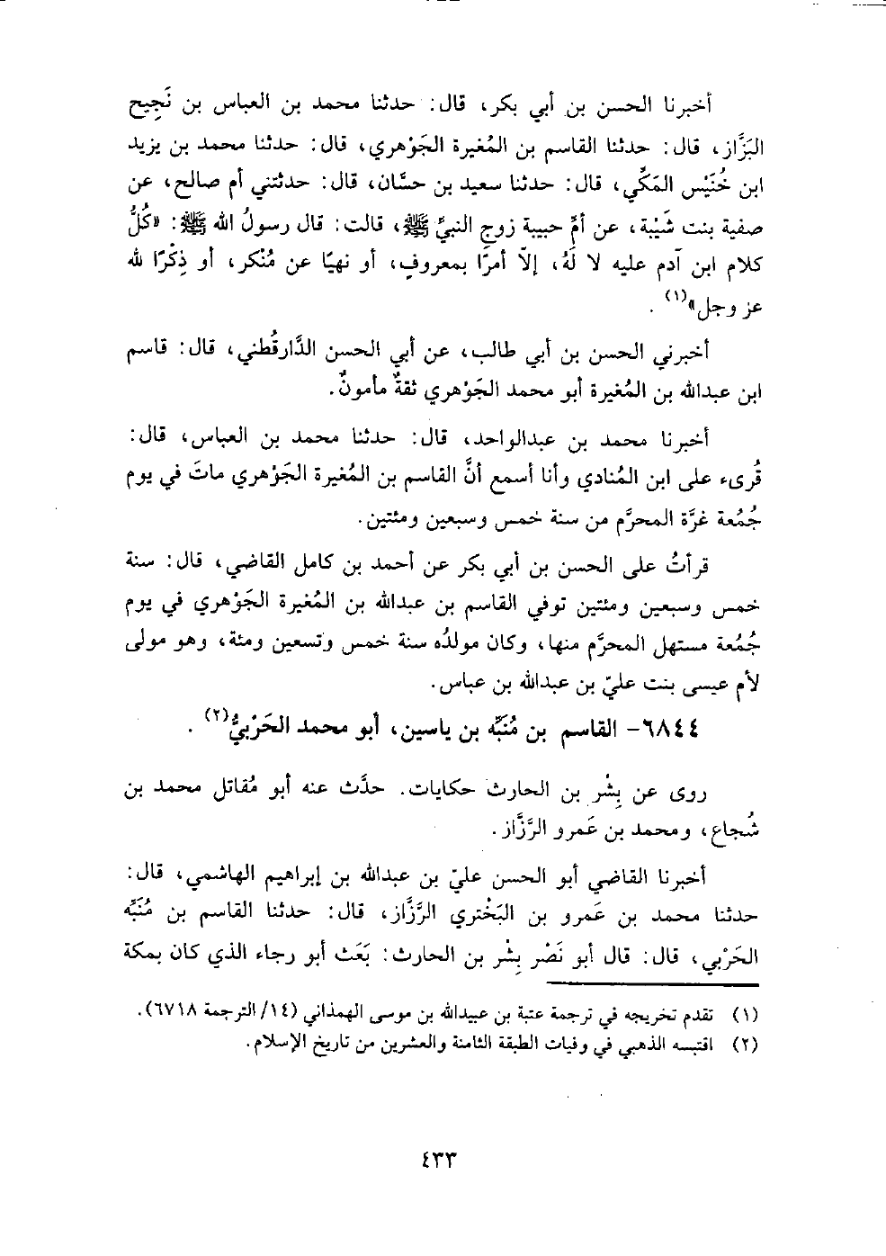 6844 - القاسم بْن منبه بْن ياسين، أَبُو مُحَمَّد الحربي روى عنه بشر بْن الحارث حكايات.