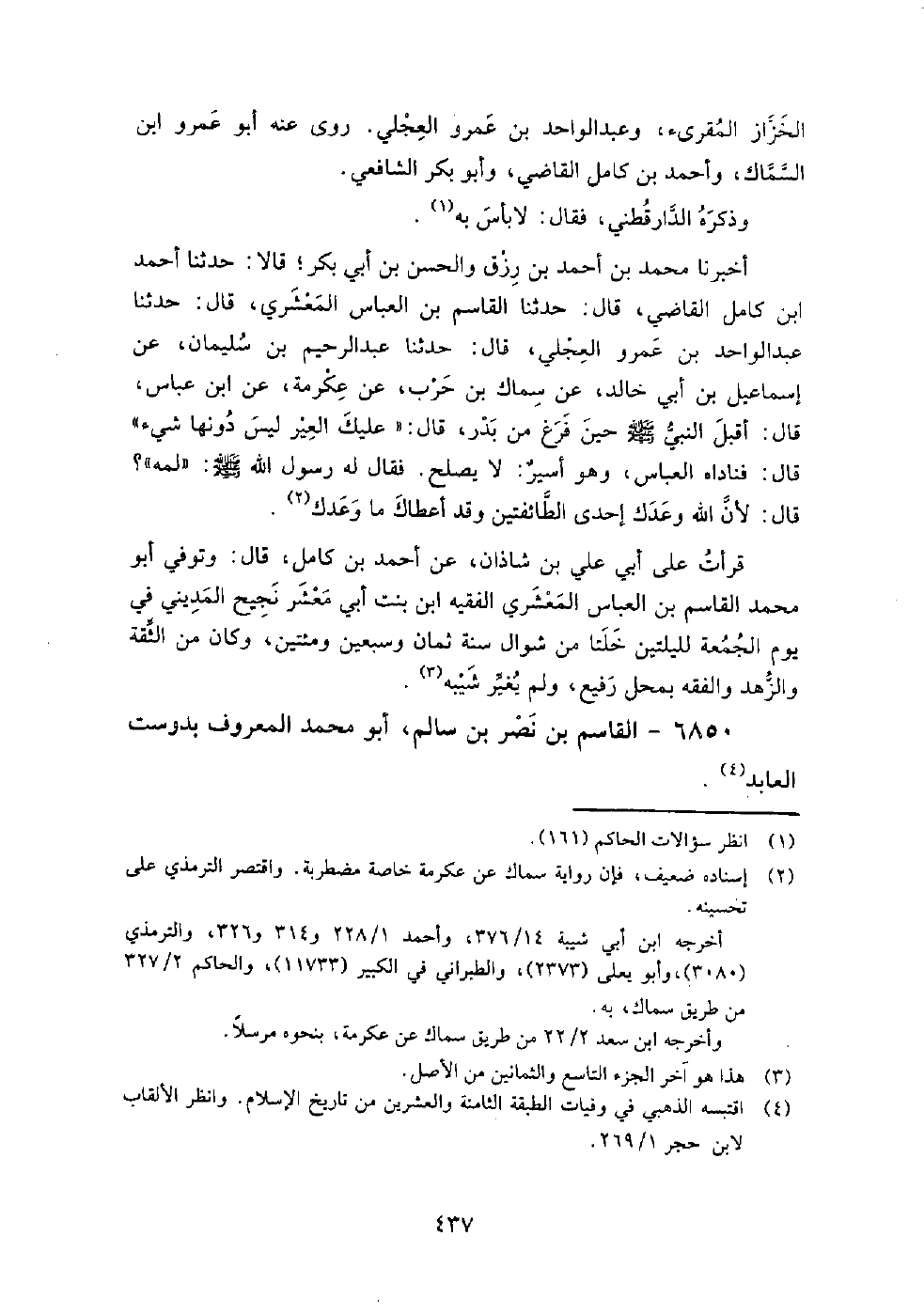 6850 - القاسم بْن نصر بْن سالم، أَبُو مُحَمَّد المعروف بدوست العابد كان من خيار المسلمين، وأعيان المتعبدين، وحدث عَنْ سريج بْن النعمان الجوهري، وعمرو بْن عون الواسطي، وعبيد بْن هاشم الكوفي.