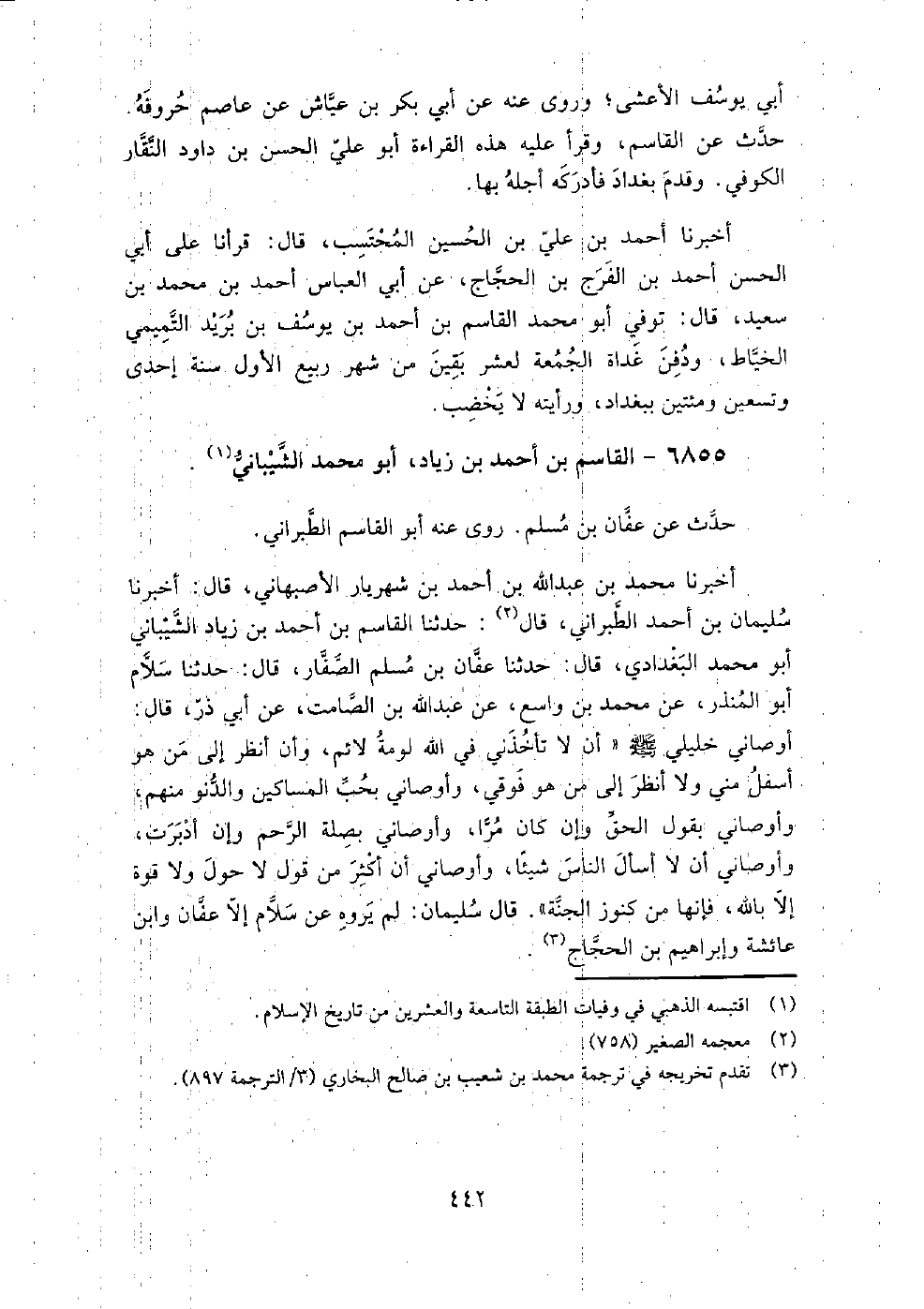 6855 - القاسم بْن أَحْمَد بْن زياد، أَبُو مُحَمَّد الشيباني حدث عَنْ عفان بْن مسلم.