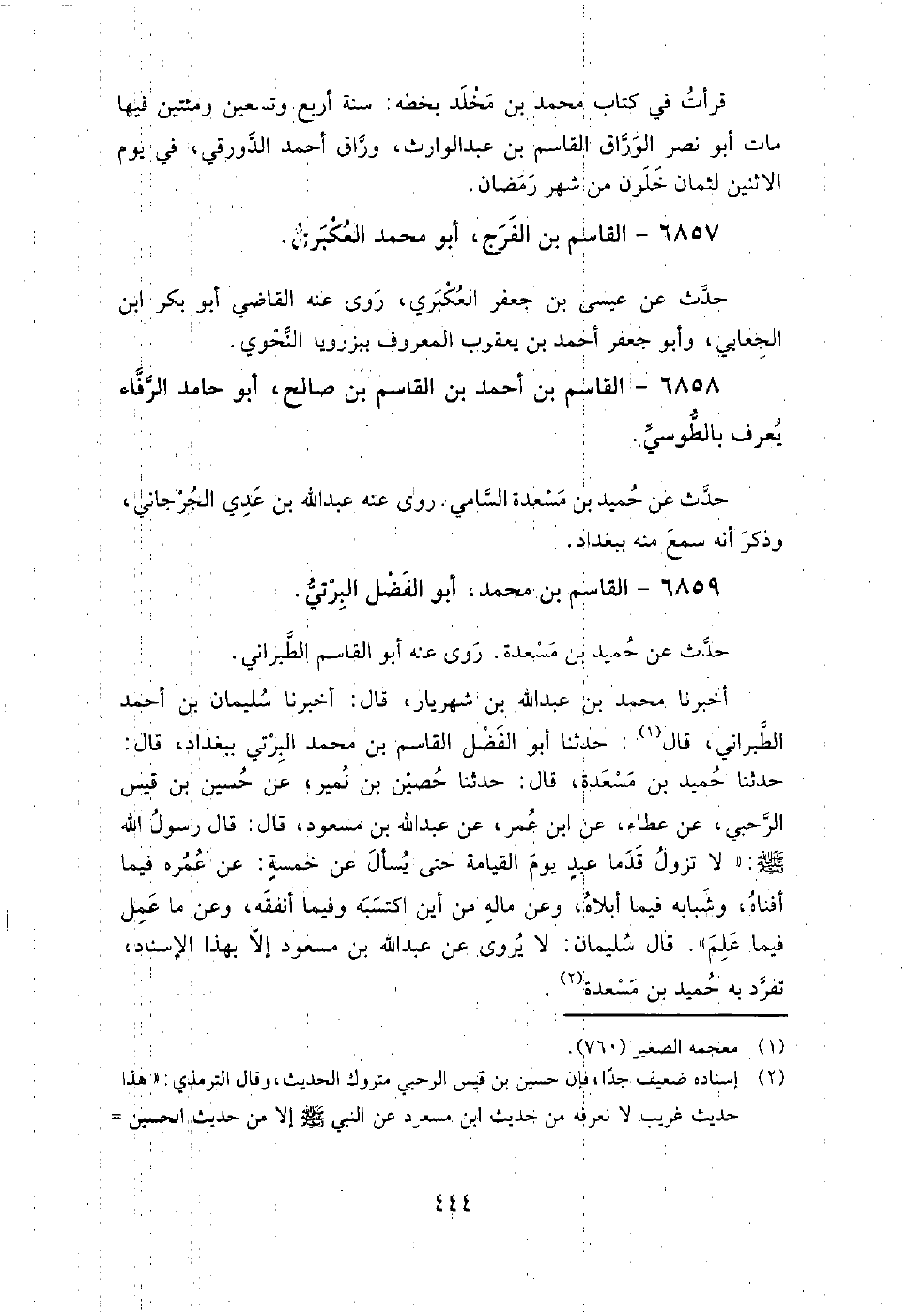 6859 - القاسم بْن مُحَمَّد، أَبُو الفضل البرتي حدث عَنْ حميد بْن مسعدة.