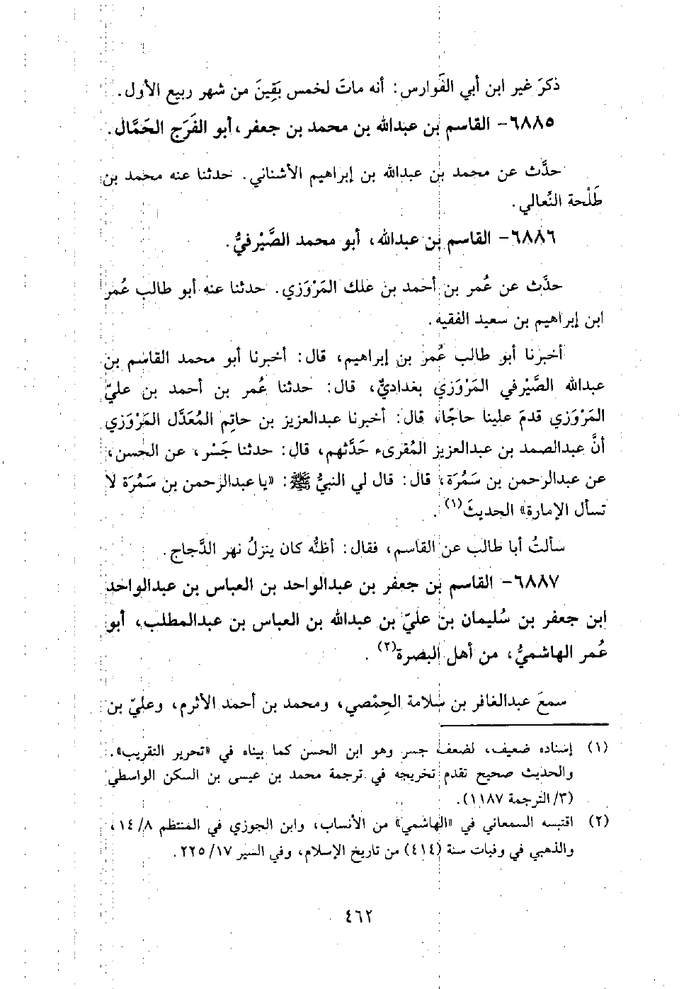 6885 - القاسم بْن عَبْد اللَّه بْن مُحَمَّد بْن جعفر، أَبُو الفرج الحمال حدث عَنْ مُحَمَّد بْن عَبْد اللَّه بْن إبراهيم الأشناني.