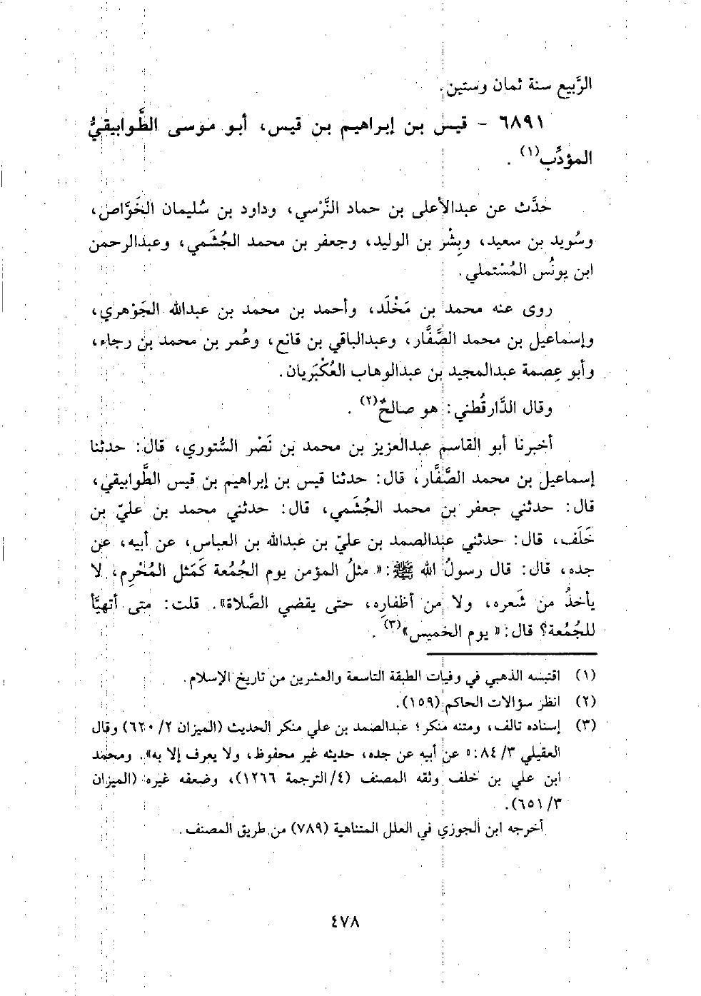6891 - قيس بْن إبراهيم بْن قيس، أَبُو موسى الطوابيقي المؤدب