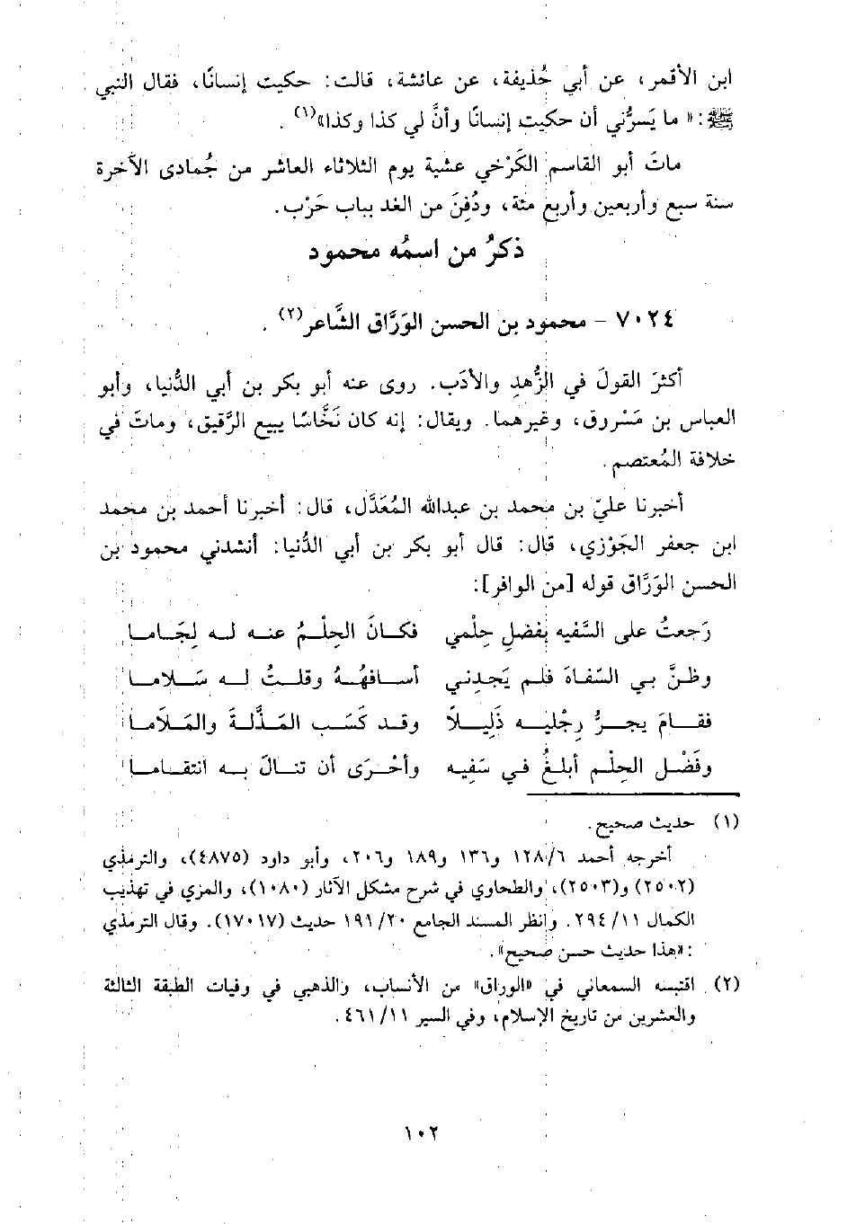 7024 - محمود بن الحسن الوراق الشاعر أكثر القول في الزهد والأدب.
