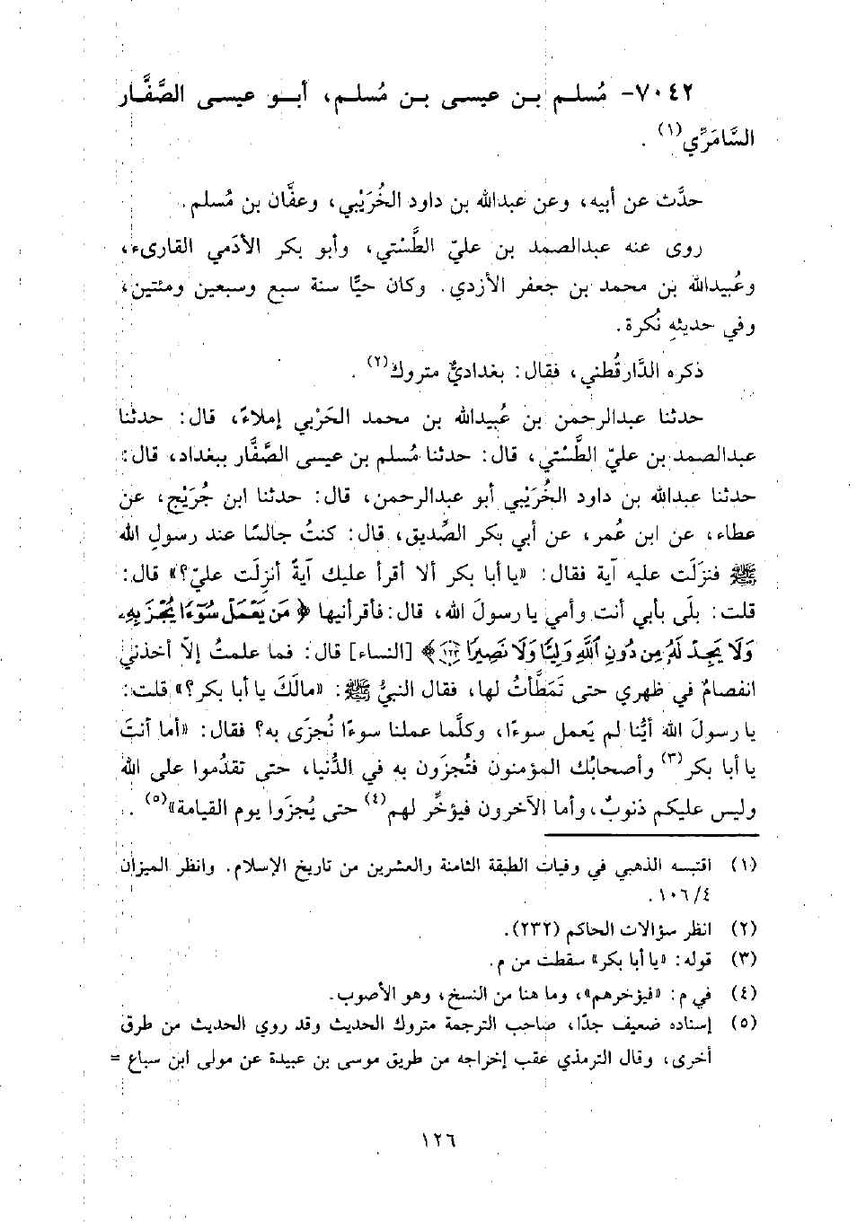 7042 - مسلم بن عيسى بن مسلم أبو عيسى الصفار السامري حدث عن: أبيه، وعن عبد الله بن داود الخريبي، وعفان بن مسلم.