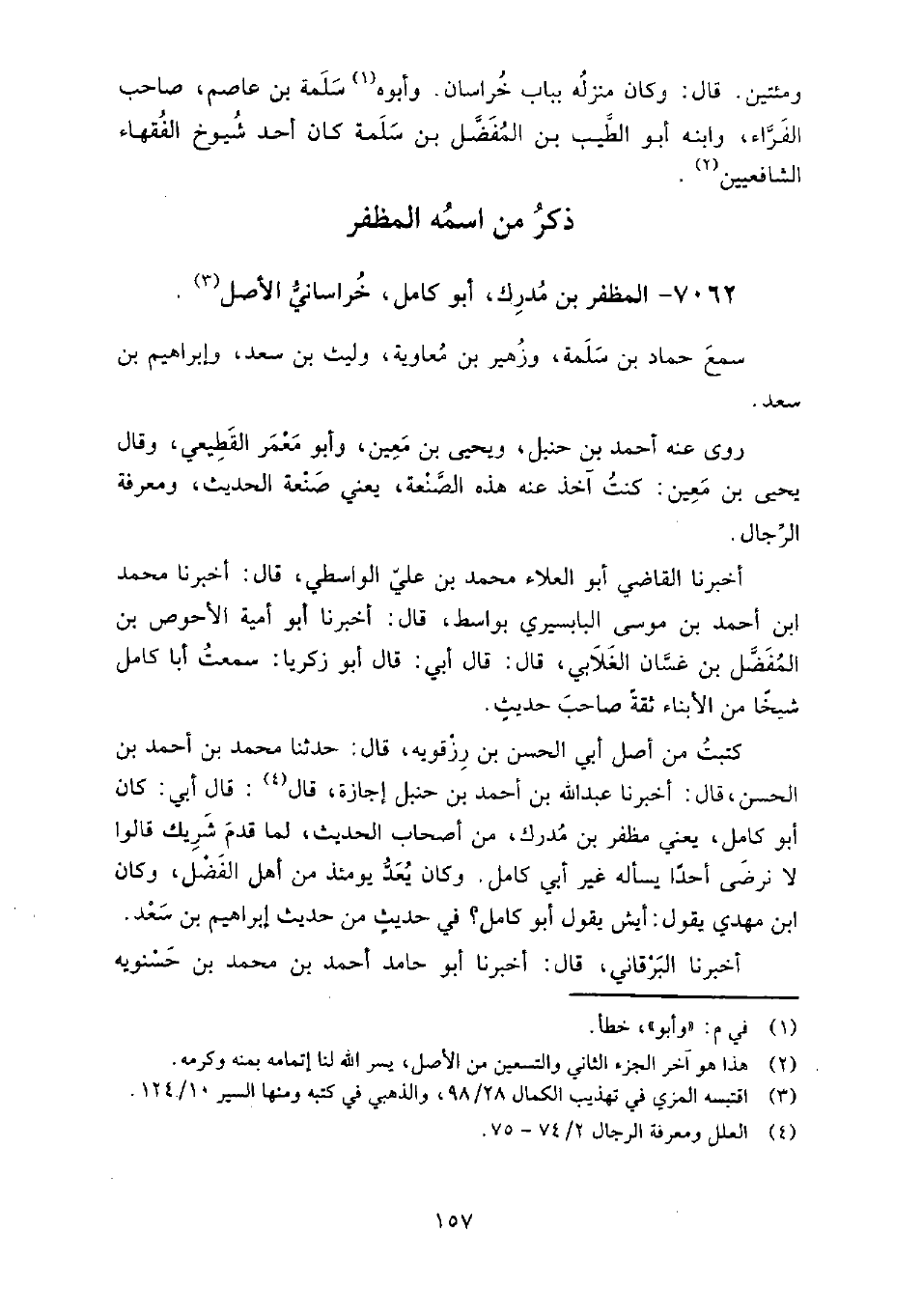 7062 - المظفر بن مدرك أبو كامل خراساني الأصل، سمع: حماد بن سلمة، وزهير بن معاوية، وليث بن سعد، وإبراهيم بن سعد.
