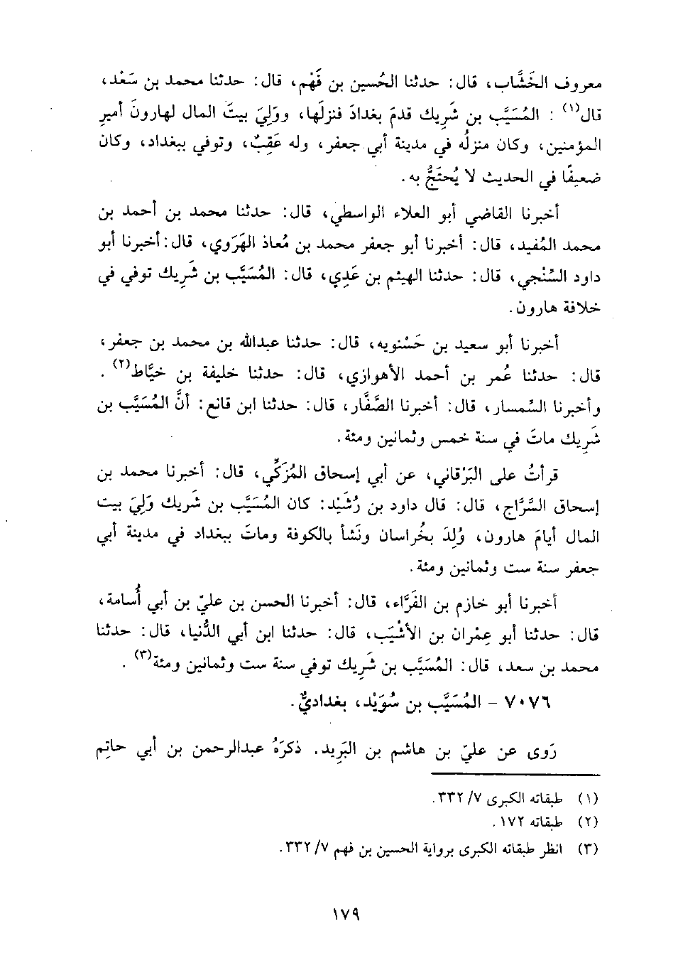 7076 - المسيب بن سويد بغدادي روى عن علي بن هاشم بن البريد.