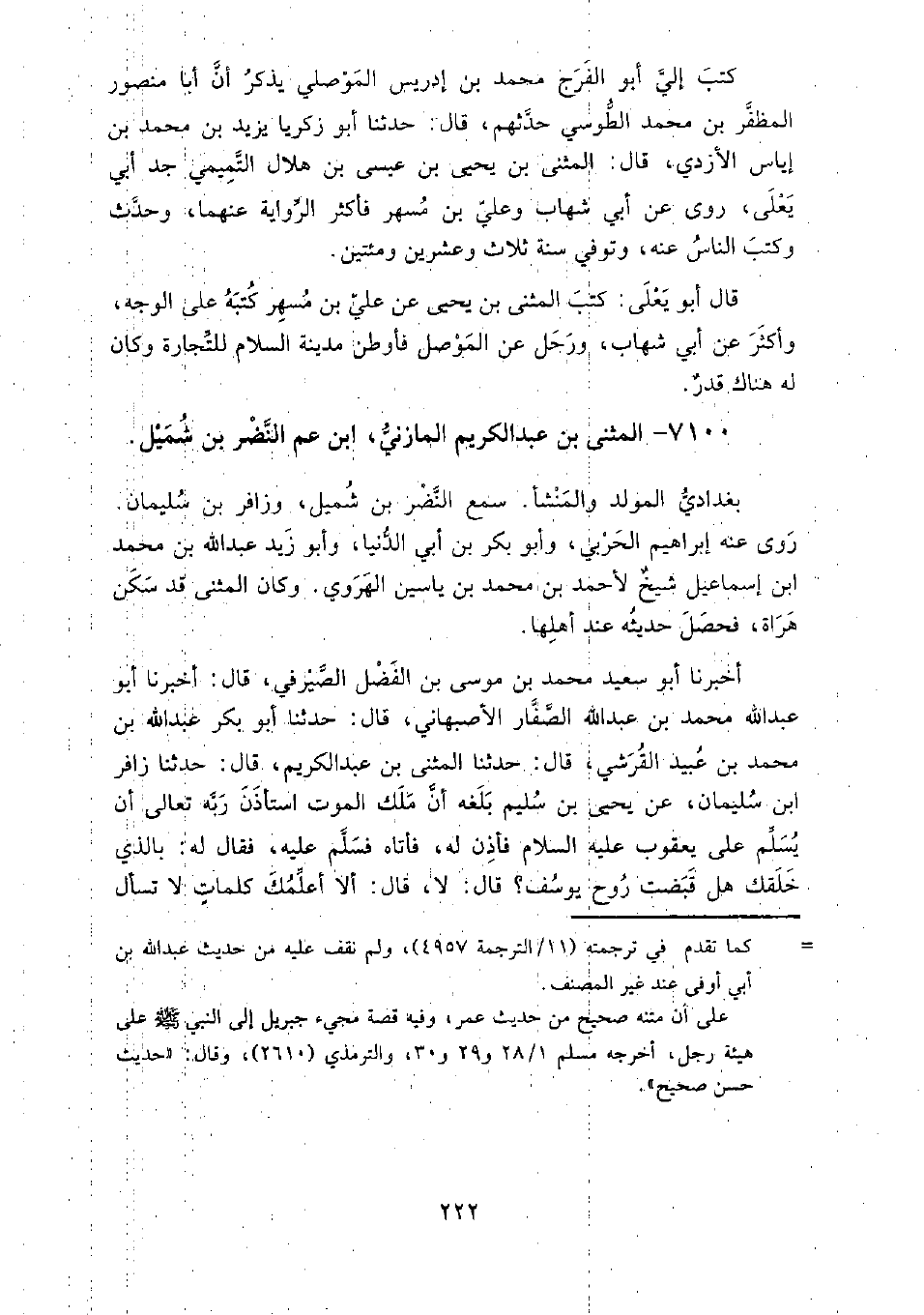 7100 - المثنى بن عبد الكريم المازني، ابن عم النضر بن شميل