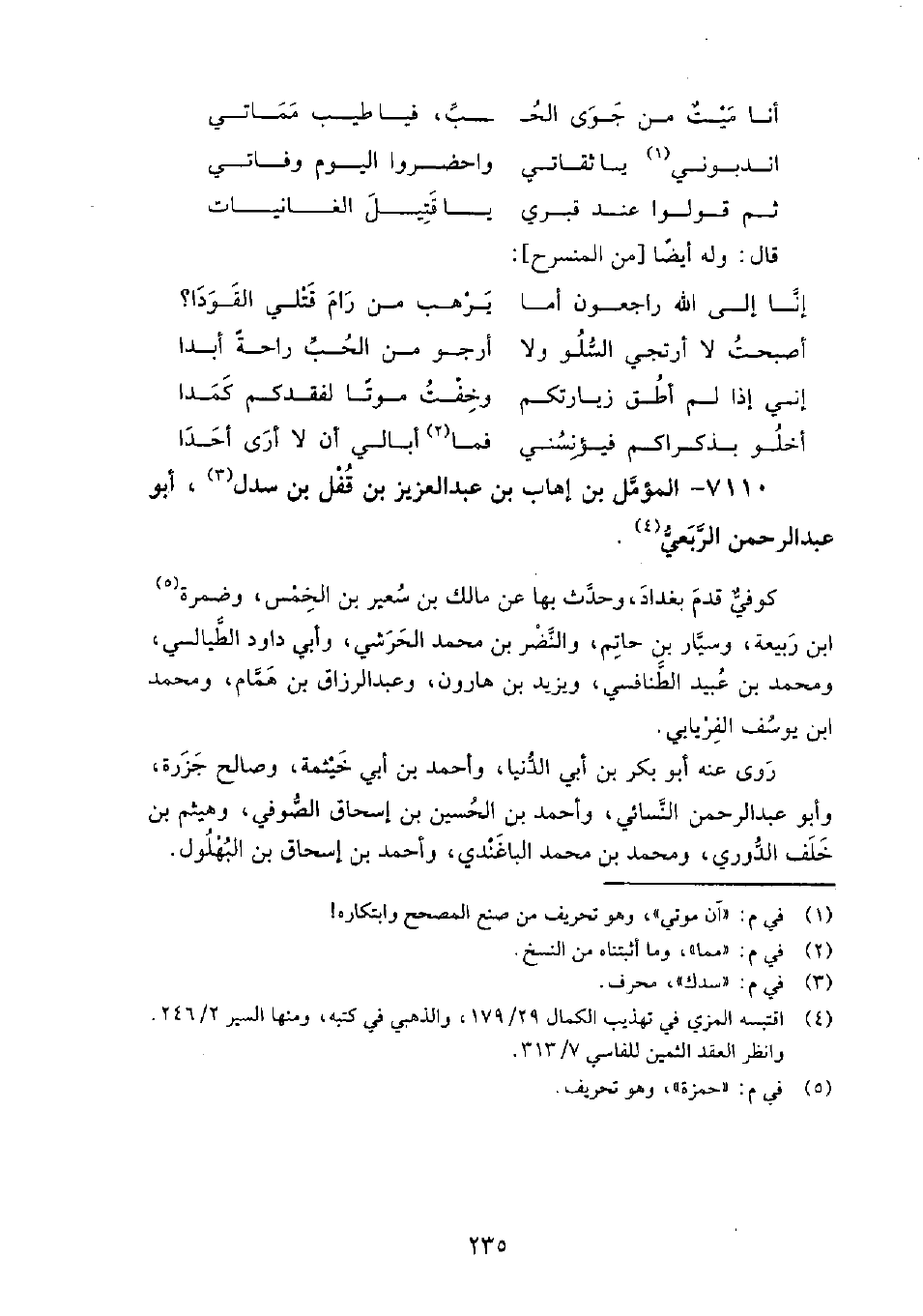 7110 - المؤمل بن إهاب بن عبد العزيز بن قفل بن سدل، أَبُو عَبْد الرَّحْمَن الربعي كوفي، قدم بغداد، وحدث بها عن: مالك بن سعير بن الخمس، وضمرة بن ربيعة، وسيار بن حاتم، والنضر بن مُحَمَّد الحرشي، وأبي داود الطيالسي، ومحمد بن عبيد الطنافسي، ويزيد بن هارون، وعبد الرزاق بن همام، ومحمد بن يوسف الفريابي.