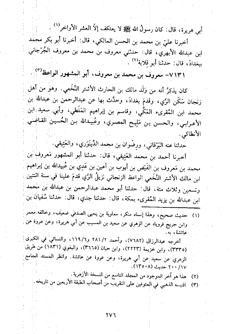 7131 - معروف بن مُحَمَّد بن معروف، أَبُو المشهور الواعظ كان يذكر أنه ولد مالك بن الحارث الأشتر النخعي.