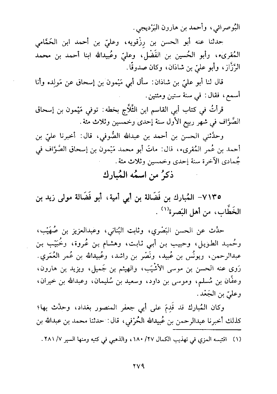 7135 - المبارك بن فضالة بن أبي أمية، أَبُو فضالة مولى زيد بن الخطاب من أهل البصرة حدث عن: الحسن البصري، وثابت البناني، وعبد العزيز بن صهيب، وحميد الطويل، وحبيب بن أبي ثابت، وهشام بن عروة، وخبيب بن عَبْد الرَّحْمَن، ويونس بن عبيد، ونصر بن راشد، وعبيد الله بن عُمَر العمري.