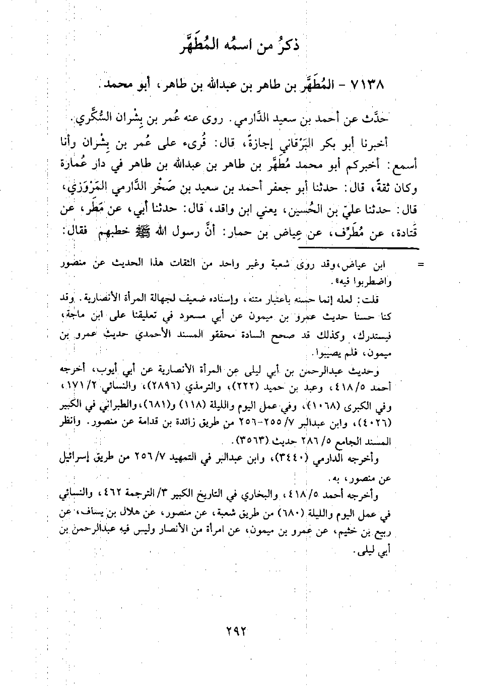 7138 - المطهر بن طاهر بن عبد الله بن طاهر أَبُو مُحَمَّد حدث عن: أَحْمَد بن سعيد الدرامي.