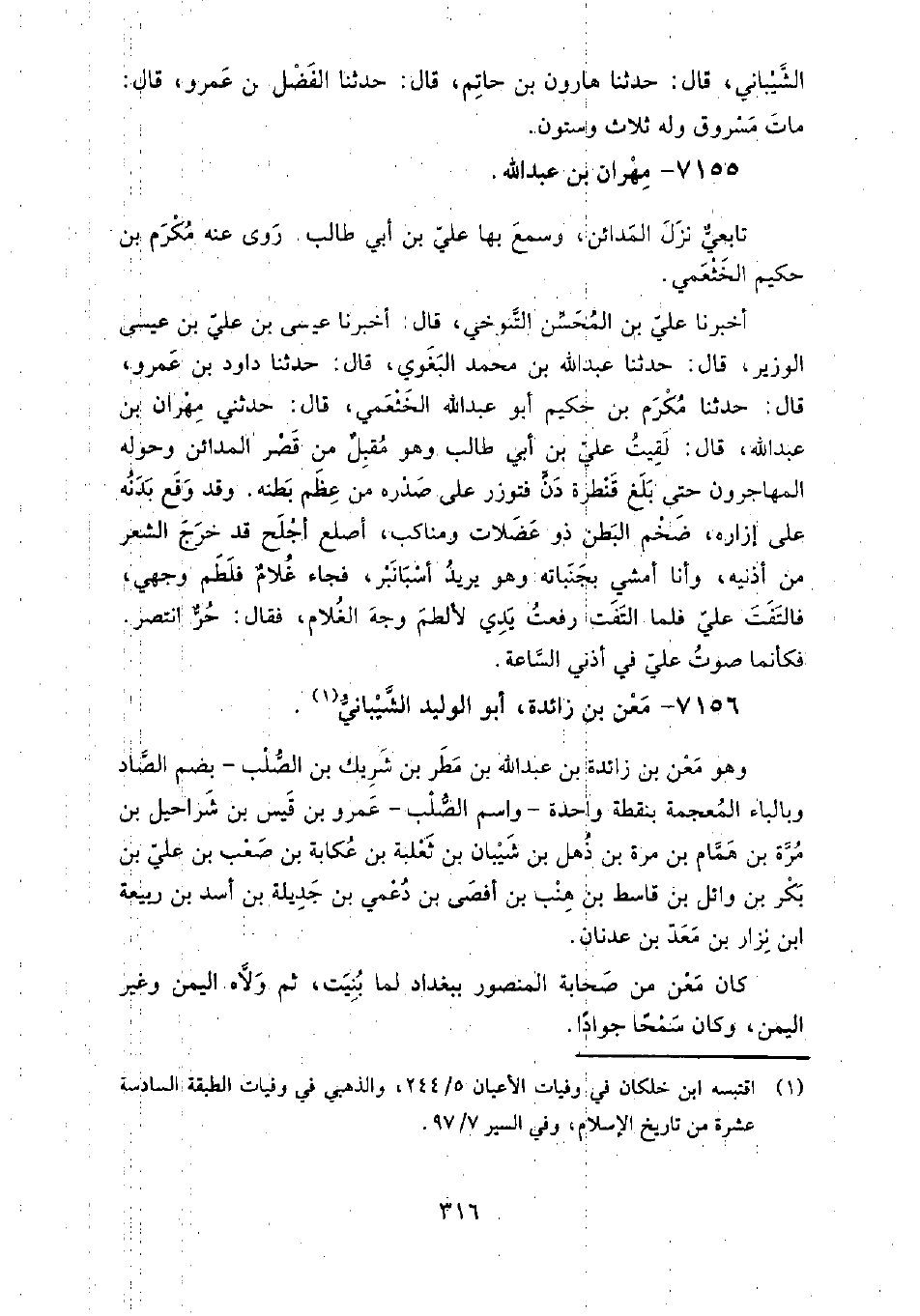 7155 - مِهْرَان بن عَبْد الله تابعي، نزل المدائن، وَسَمِعَ بها عَليّ بن أَبِي طَالِب.