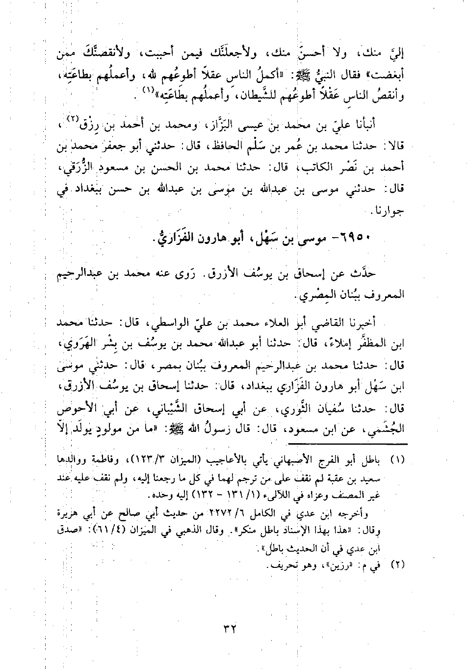 6950 - موسى بن سهل أبو هارون الفزاري حدث عن إسحاق بن يوسف الأزرق.