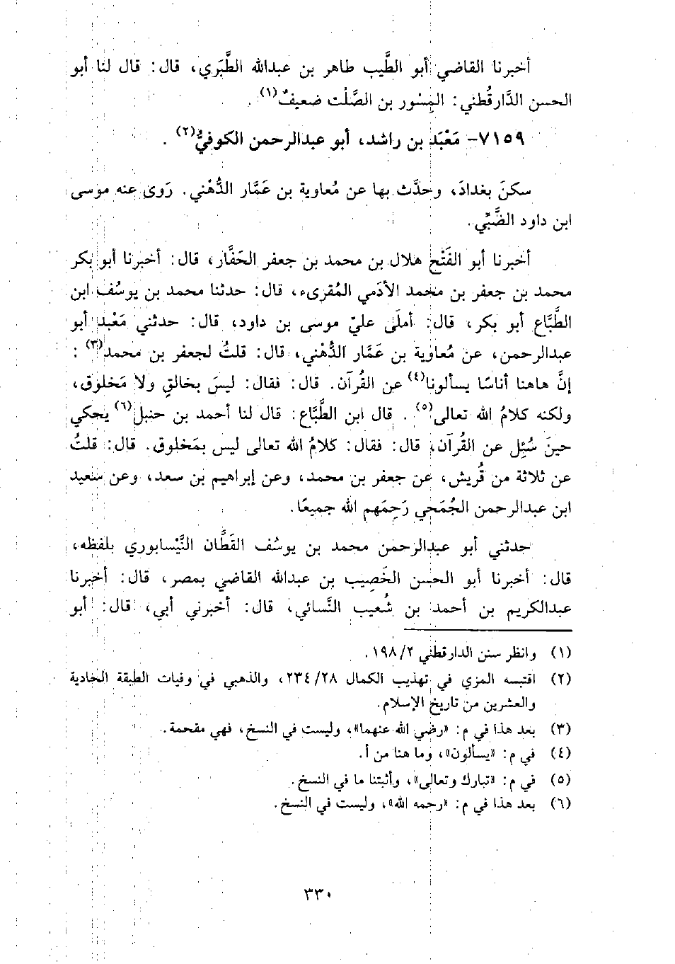 7159 - معبد بن راشد، أَبُو عَبْد الرَّحْمَن الكوفي سكن بغداد، وحدث بها عن: معاوية بن عمار الدهني.