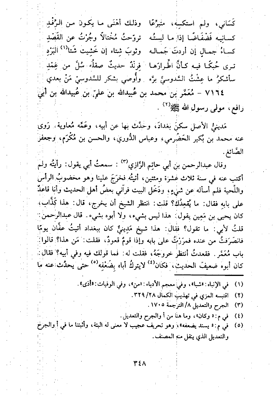 7164 - معمر بن مُحَمَّد بن عبيد الله بن علي بن عبيد الله بن أبي رافع مولى رسول الله، صَلَّى اللَّهُ عَلَيْهِ وَسَلَّمَ مديني الأصل سكن بغداد، وحدث بها عن: أبيه، وعمه معاوية.
