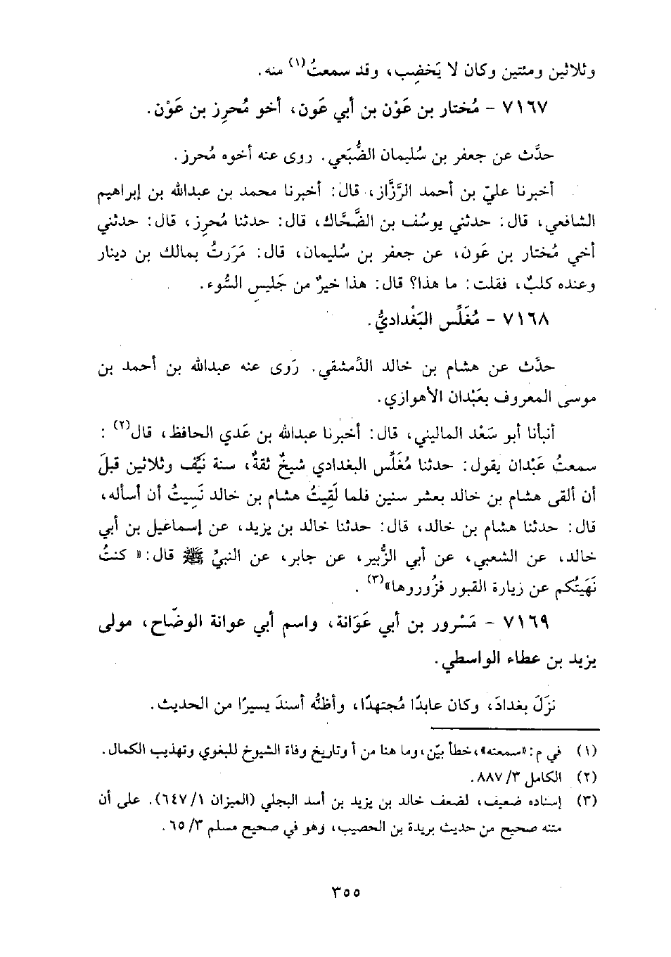 7168 - مغلس البَغْدَادِيّ حَدَّثَ عن: هشام بن خَالِد الدِّمَشْقِيّ، رَوَى عنه: عَبْد الله بن أَحْمَد بن موسى المعروف بعبدان الأهوازي.
