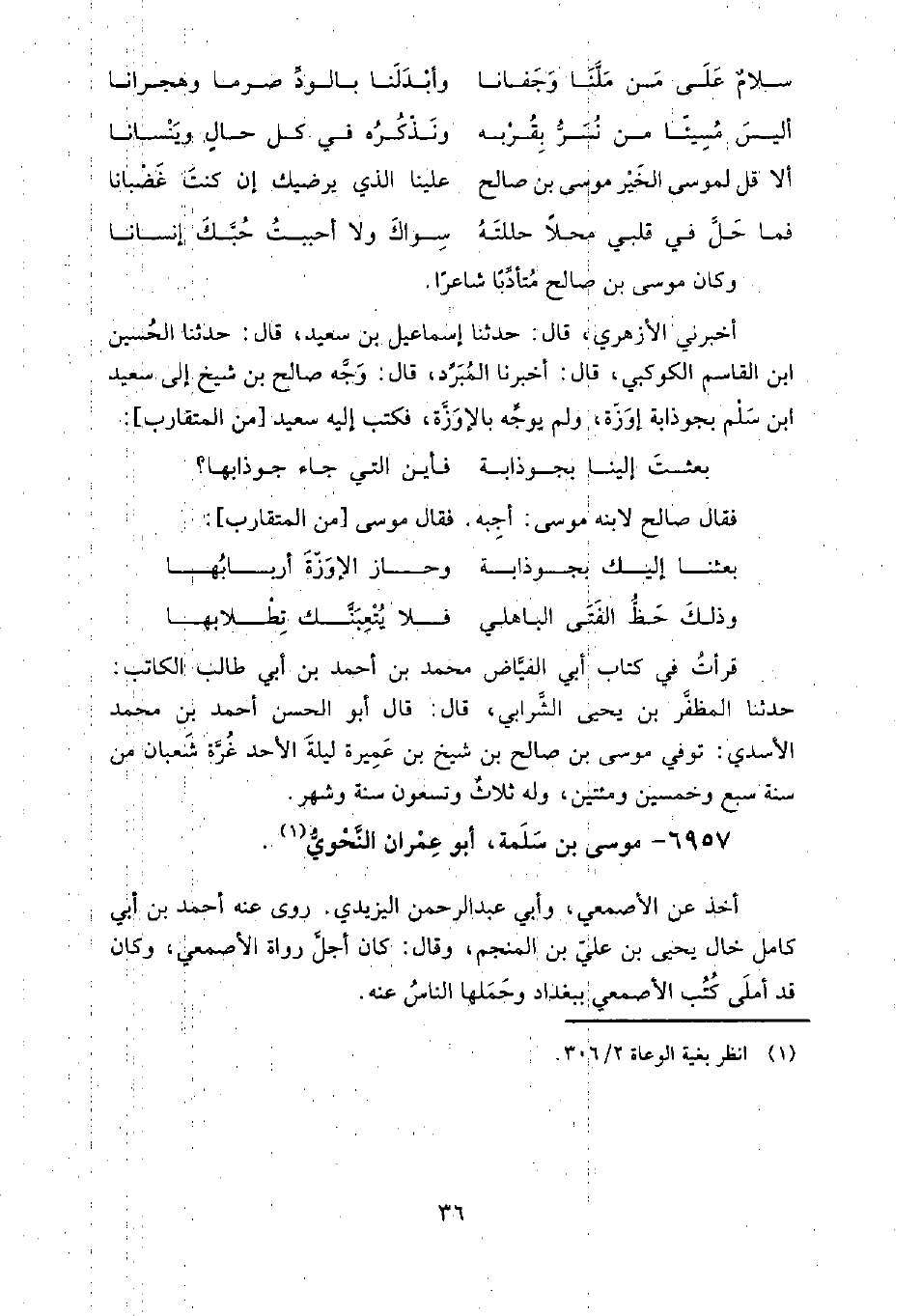 6957 - موسى بن سلمة أبو عمران النحوي أخذ عن الأصمعي، وأبي عبد الرحمن.