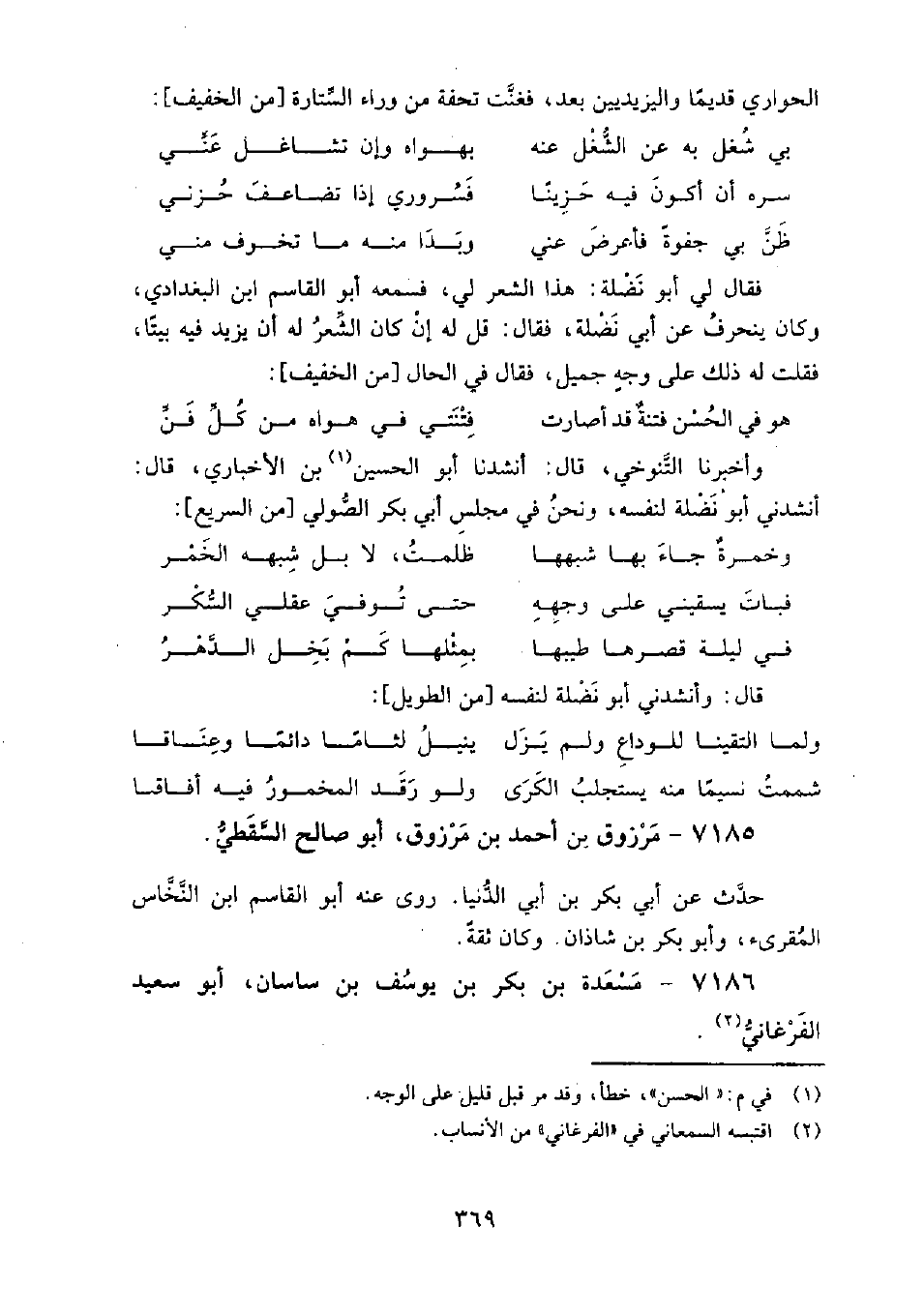 7186 - مسعدة بن بكر بن يوسف بن ساسان أَبُو سعيد الفرغاني قدم بغداد حاجا، وحدث بها عن: الحسن بن سفيان النسوي.