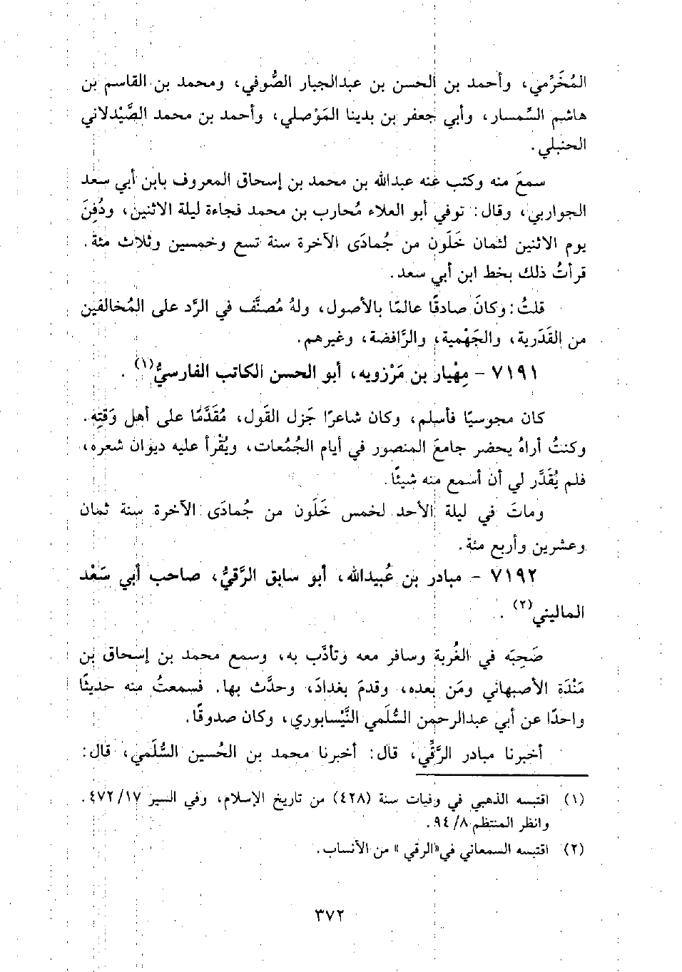 7192 - مبادر بن عُبَيْد الله أَبُو سابق الرَّقِّيّ صاحب أَبِي سَعْد الماليني