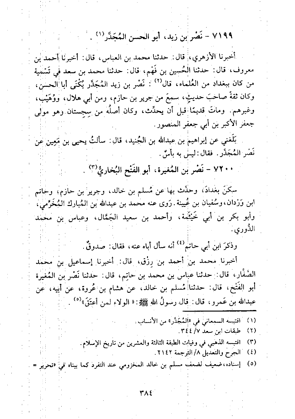 7200 - نصر بن المغيرة أَبُو الفتح البخاري سكن بغداد، وحدث بها عن: مسلم بن خالد، وجرير بن حازم، وحاتم بن، وردان، وسفيان بن عيينة.