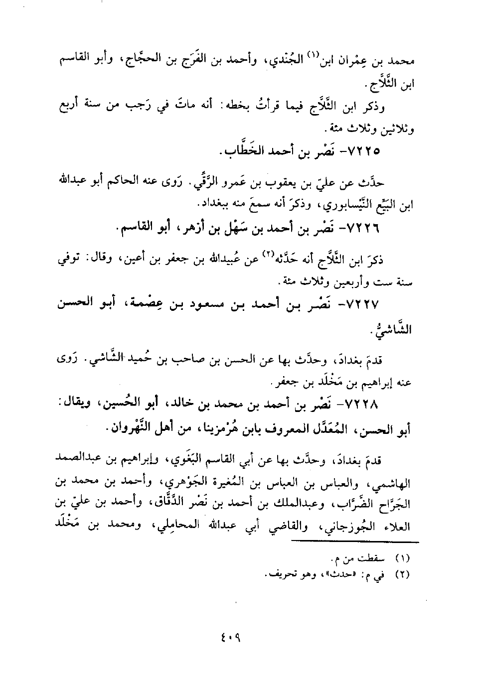 7227 - نصر بن أَحْمَد بن مسعود بن عصمة أَبُو الحسن الشاشي قدم بغداد، وحدث بها عن: الحسن بن صاحب بن حميد الشاشي.