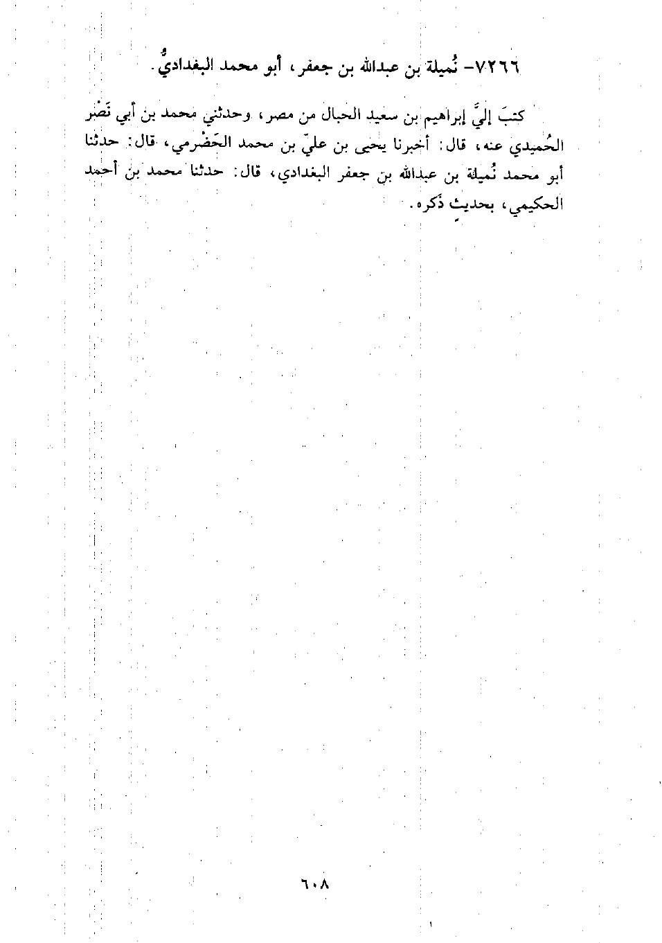 7266 - نميلة بن عبد الله بن جعفر أَبُو مُحَمَّد البغدادي كتب إلي إبراهيم بن سعيد الحبال من مصر.